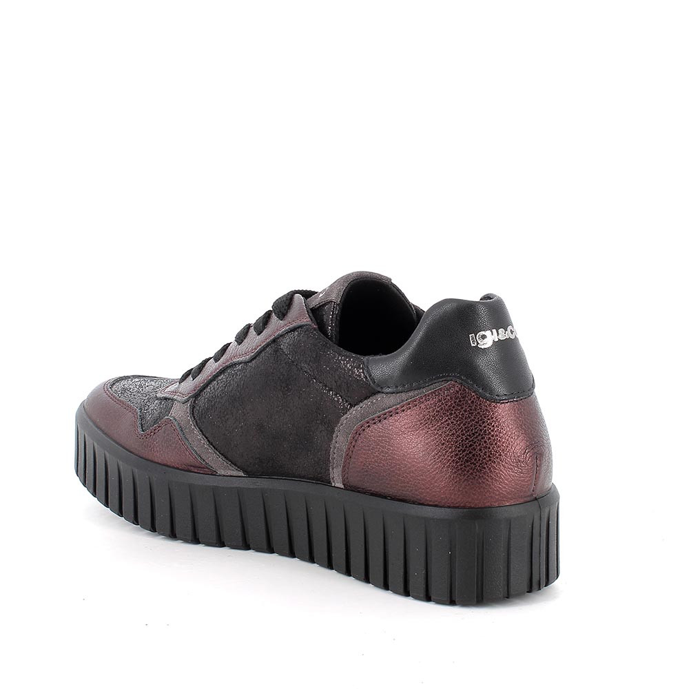 Sneakers with wedge for women burgundy and black with laces