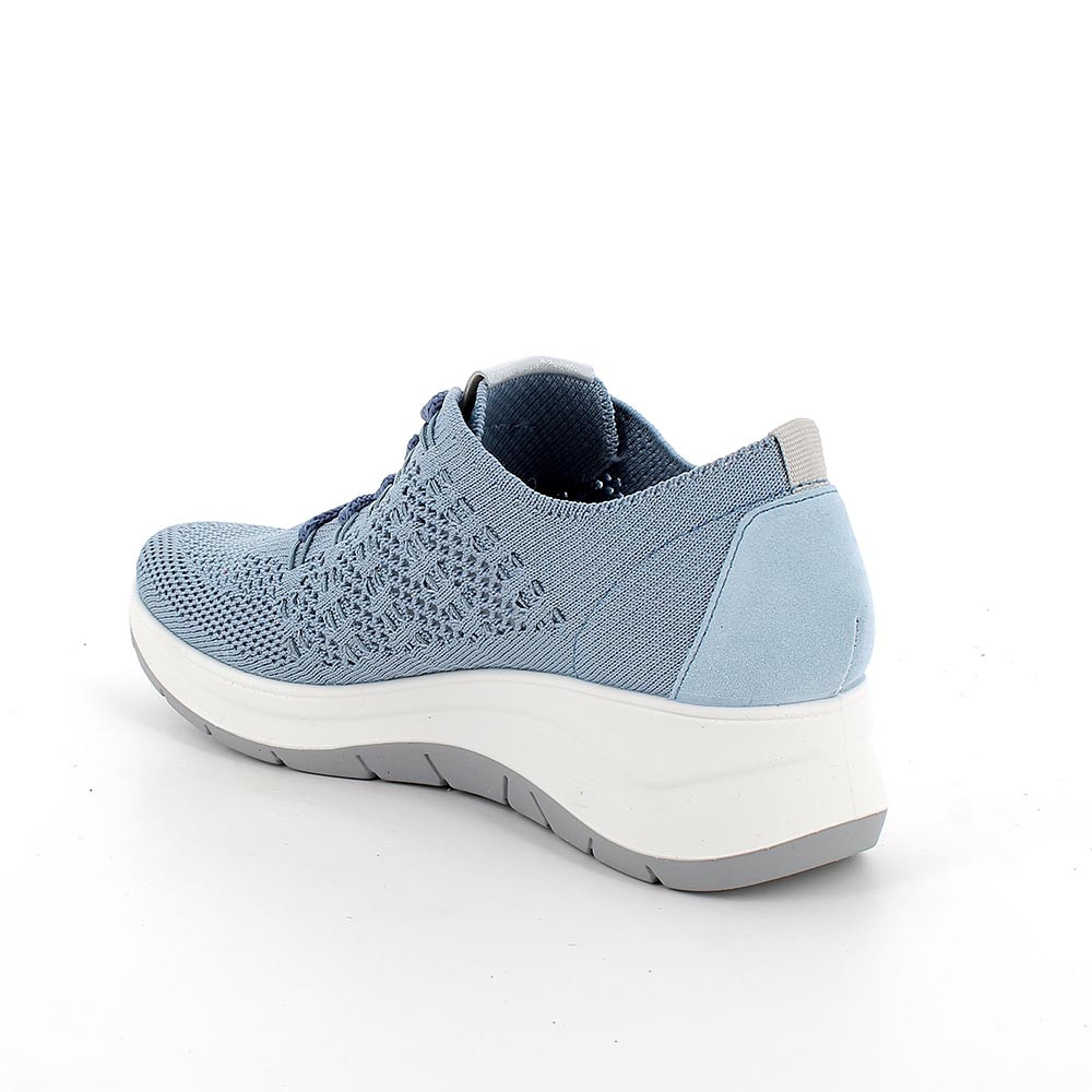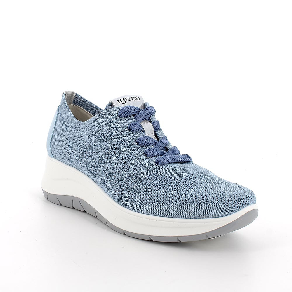 SHOES WITH WEDGE FOR WOMAN LIGHT BLUE AND SILVER WITH LACES