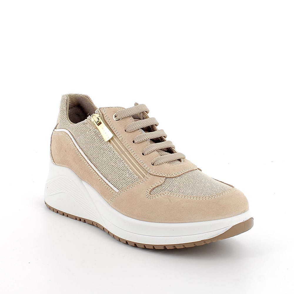 SNEAKERS WITH WEDGE FOR WOMAN BEIGE AND PLATINUM WITH ZIP