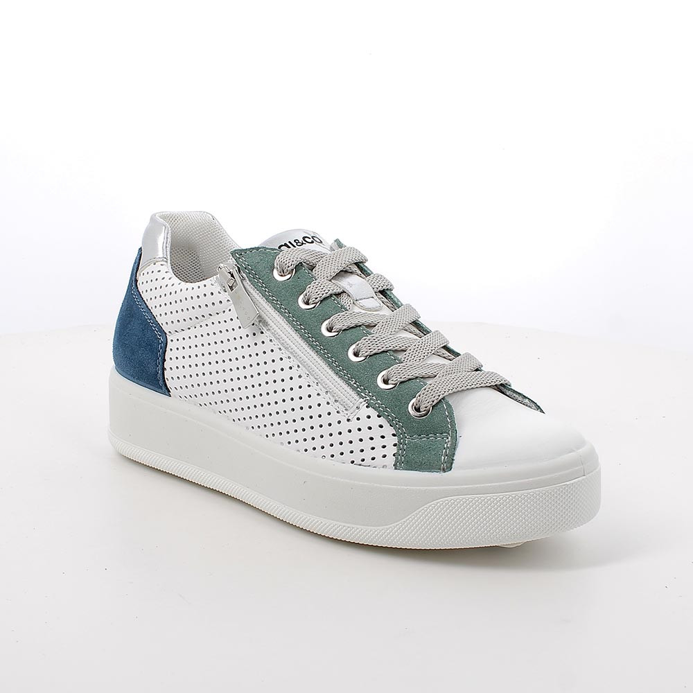 SNEAKERS FOR WOMAN WHITE AND GREEN WITH ZIP