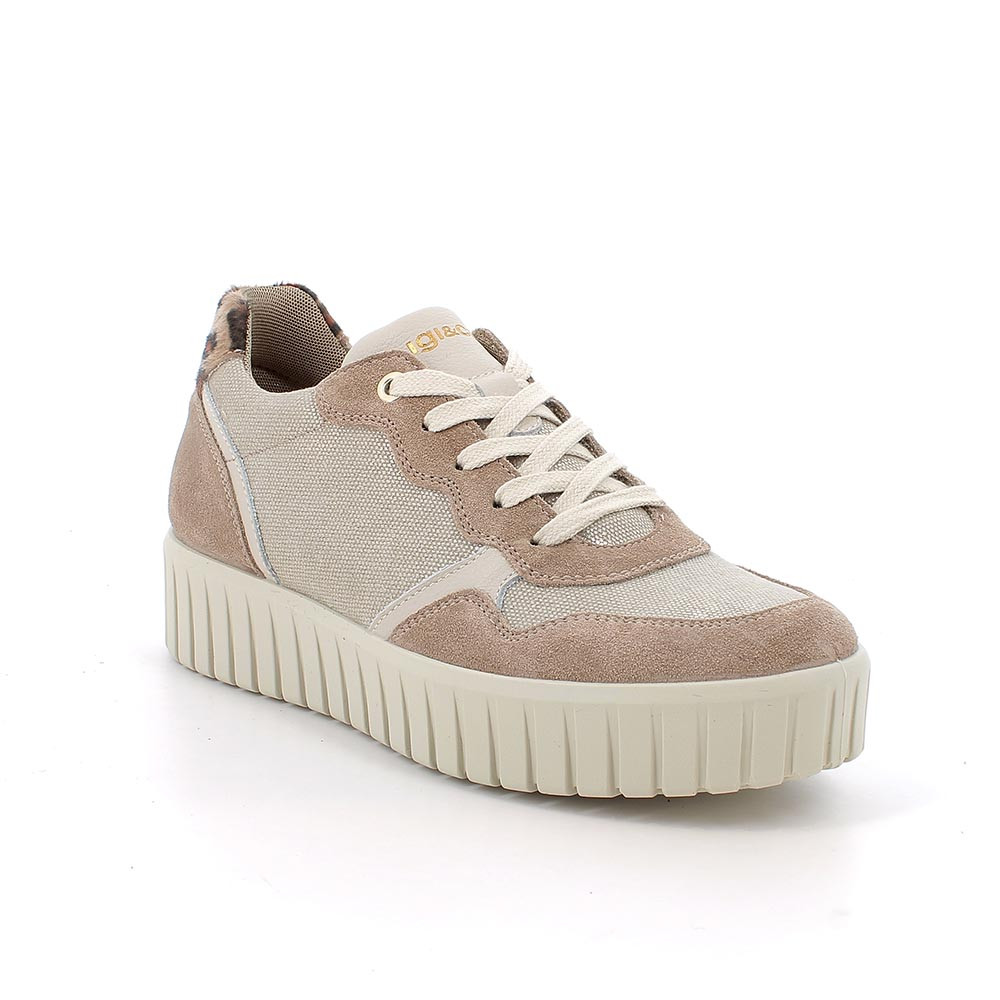 SNEAKERS WITH WEDGE FOR WOMAN BEIGE AND BROWN WITH LACES