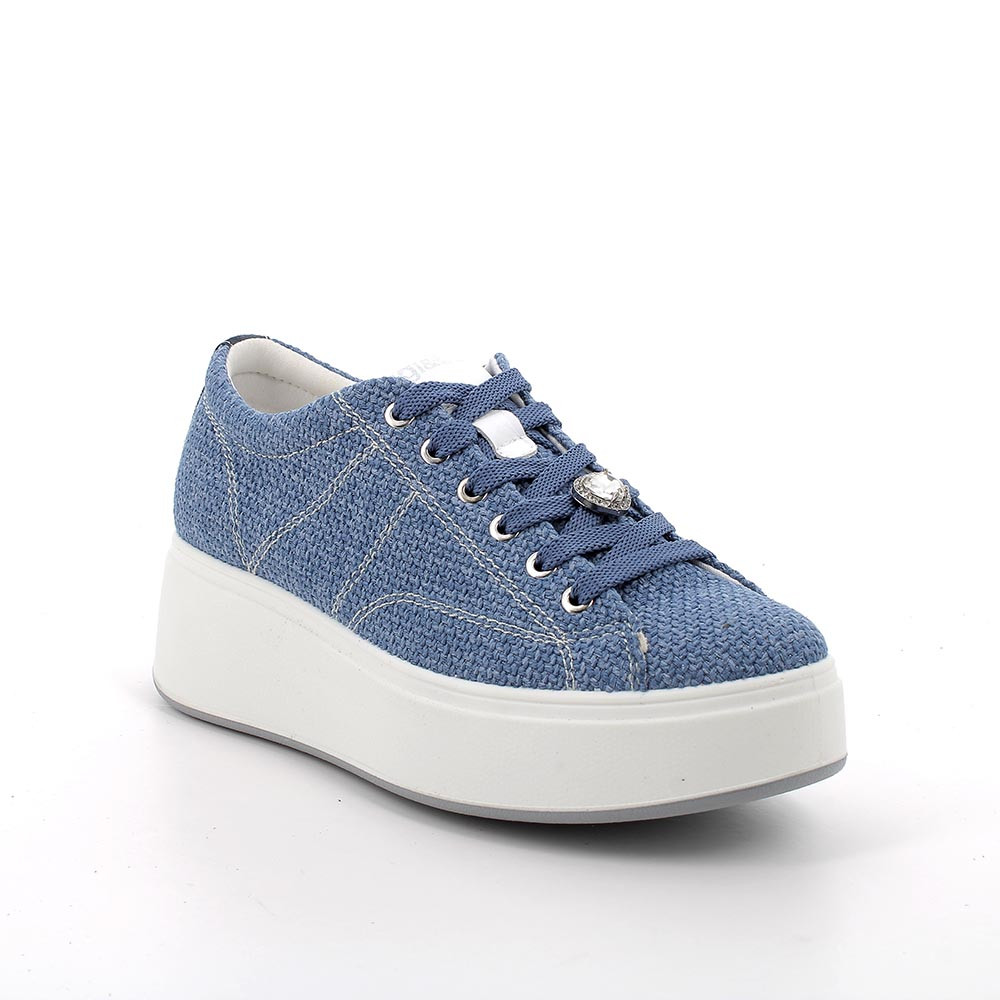 SNEAKERS WITH WEDGE FOR WOMAN LIGHT BLUE AND BLUE WITH LACES