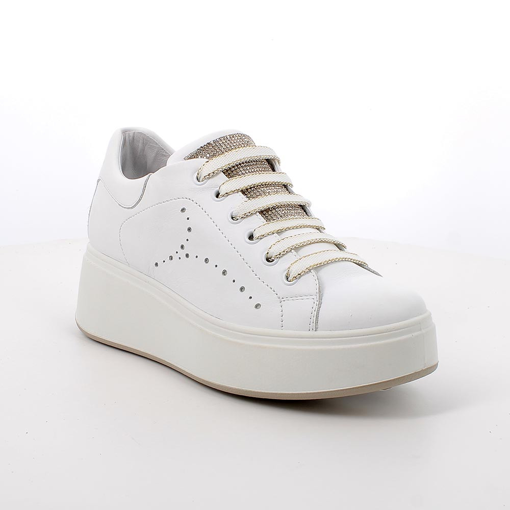 SNEAKERS WITH WEDGE FOR WOMAN WHITE AND PLATINUM WITH LACES