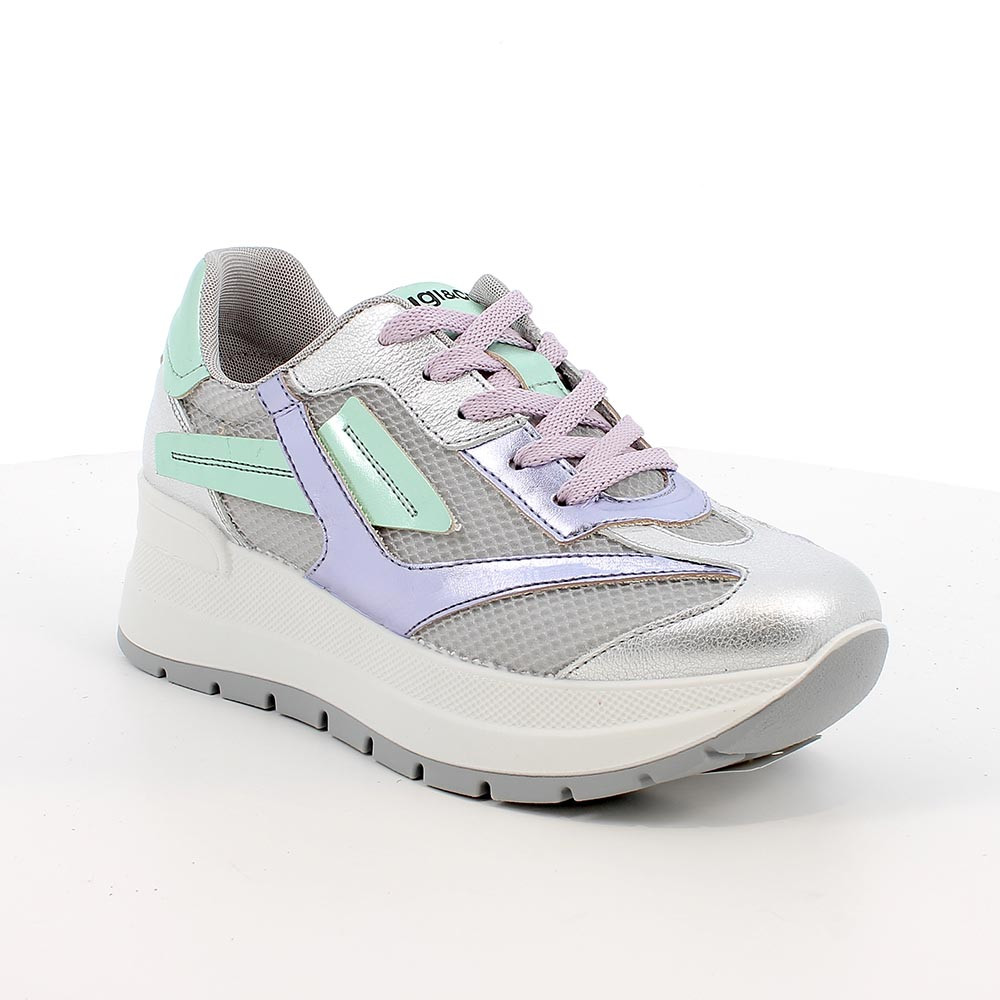 SNEAKERS WITH WEDGE FOR WOMAN SILVER AND GREY WITH LACES