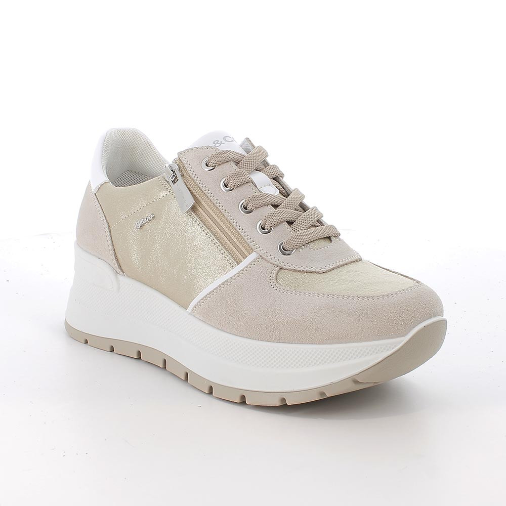 SNEAKERS FOR WOMAN BEIGE AND PLATINUM WITH ZIP