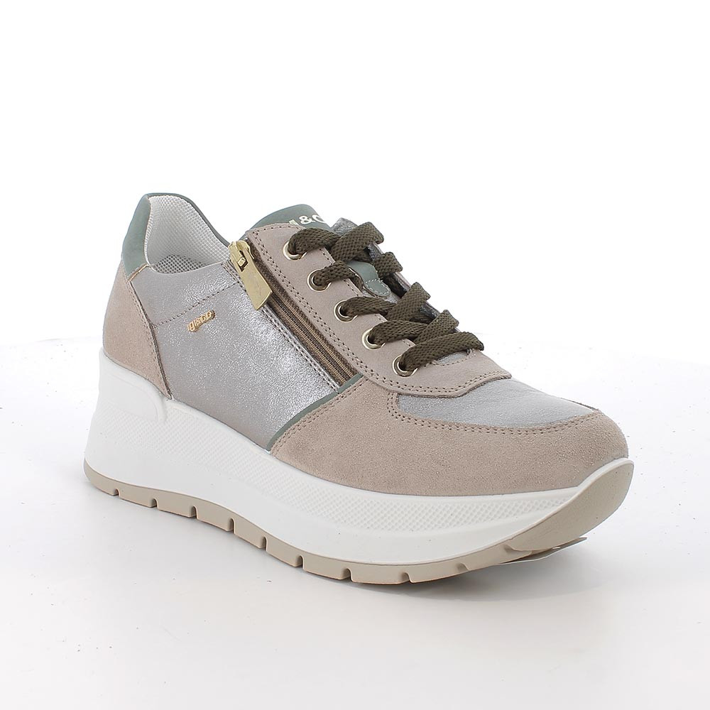 SNEAKERS FOR WOMAN BEIGE AND GREY WITH ZIP