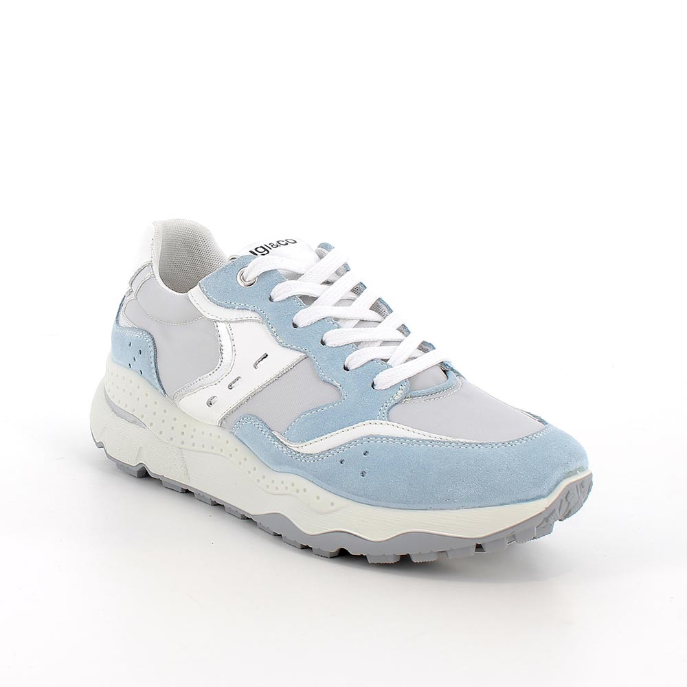 SNEAKERS WITH WEDGE FOR WOMAN LGHT BLUE AND GREY WITH LACES
