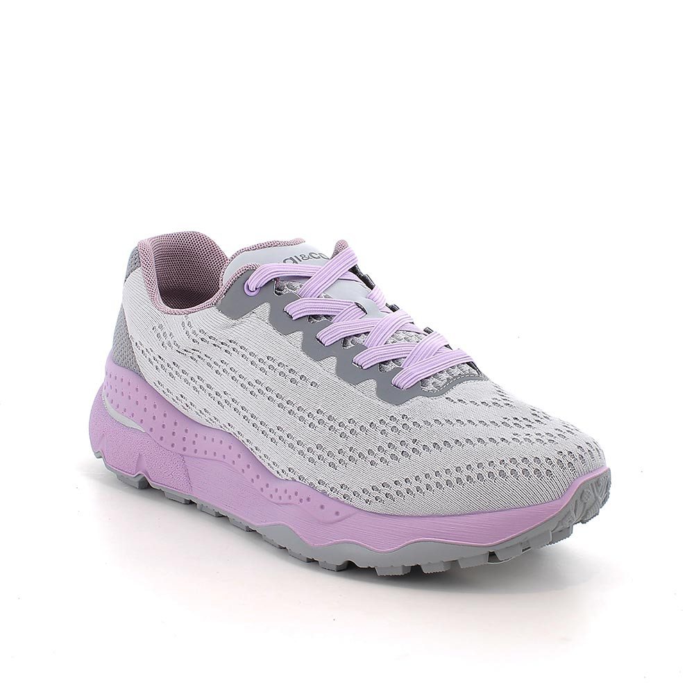 Technical-looking sneakers made with knit fabric uppers. The particular weave not only favors perspiration but also constitutes a refined decorative element. The holes for the passage of the strings are protected by an anti-slip film. The quality of these women's sports shoes is confirmed by the presence of a memory foam footbed, which adapts perfectly to the morphology of the foot.