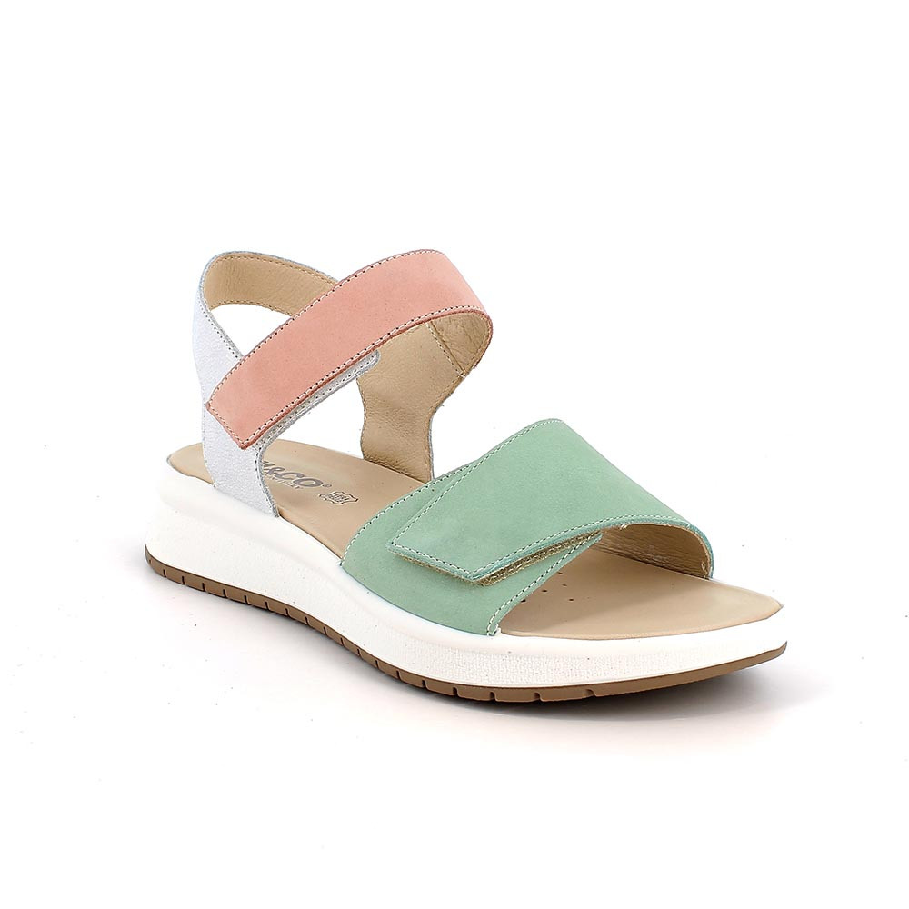 SANDALS FOR WOMAN GREEN AND SILVER WITH VELCRO