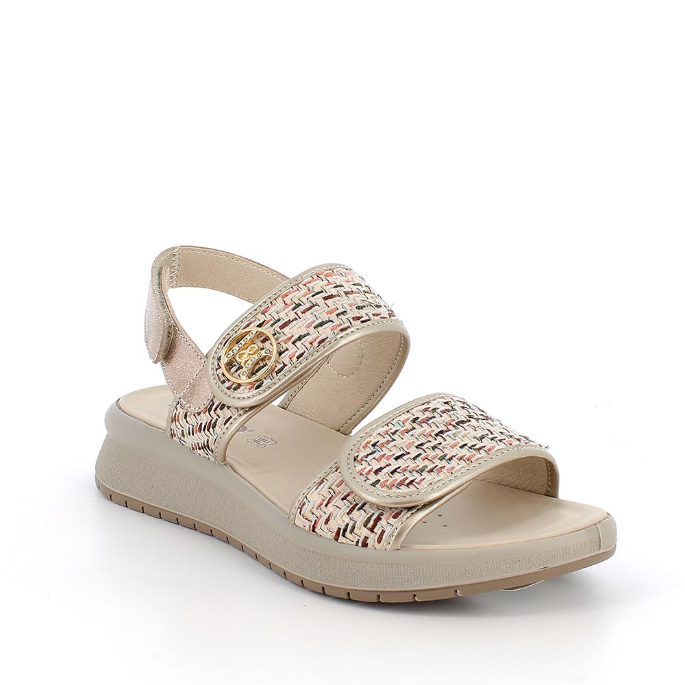 SANDALS FOR WOMAN BEIGE AND PLATINUM WITH VELCRO