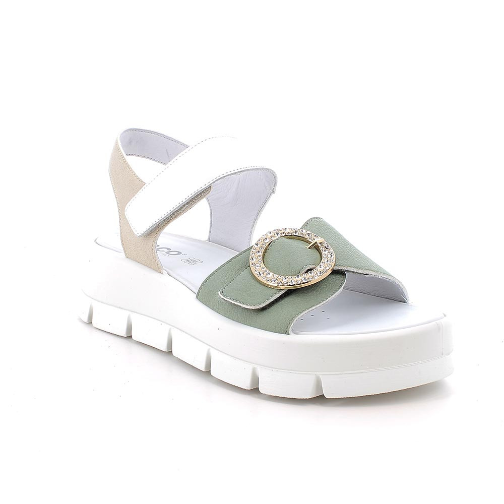 SANDALS WITH WEDGE FOR WOMAN GREEN AND WHITE WITH VELCRO