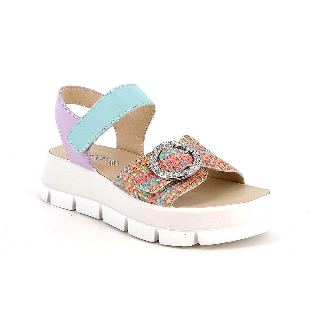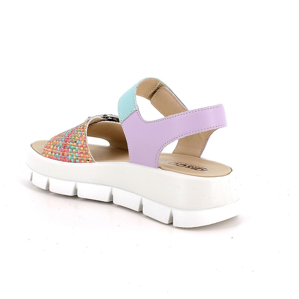 SANDALS WITH WEDGE FOR WOMAN TURQUOISE AND VIOLETT WITH VELCRO