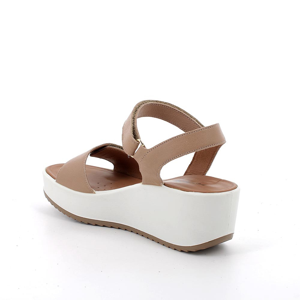 SANDALS WITH WEDGE FOR WOMAN BEIGE AND BROWN WITH VELCRO