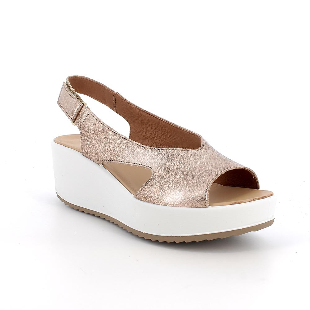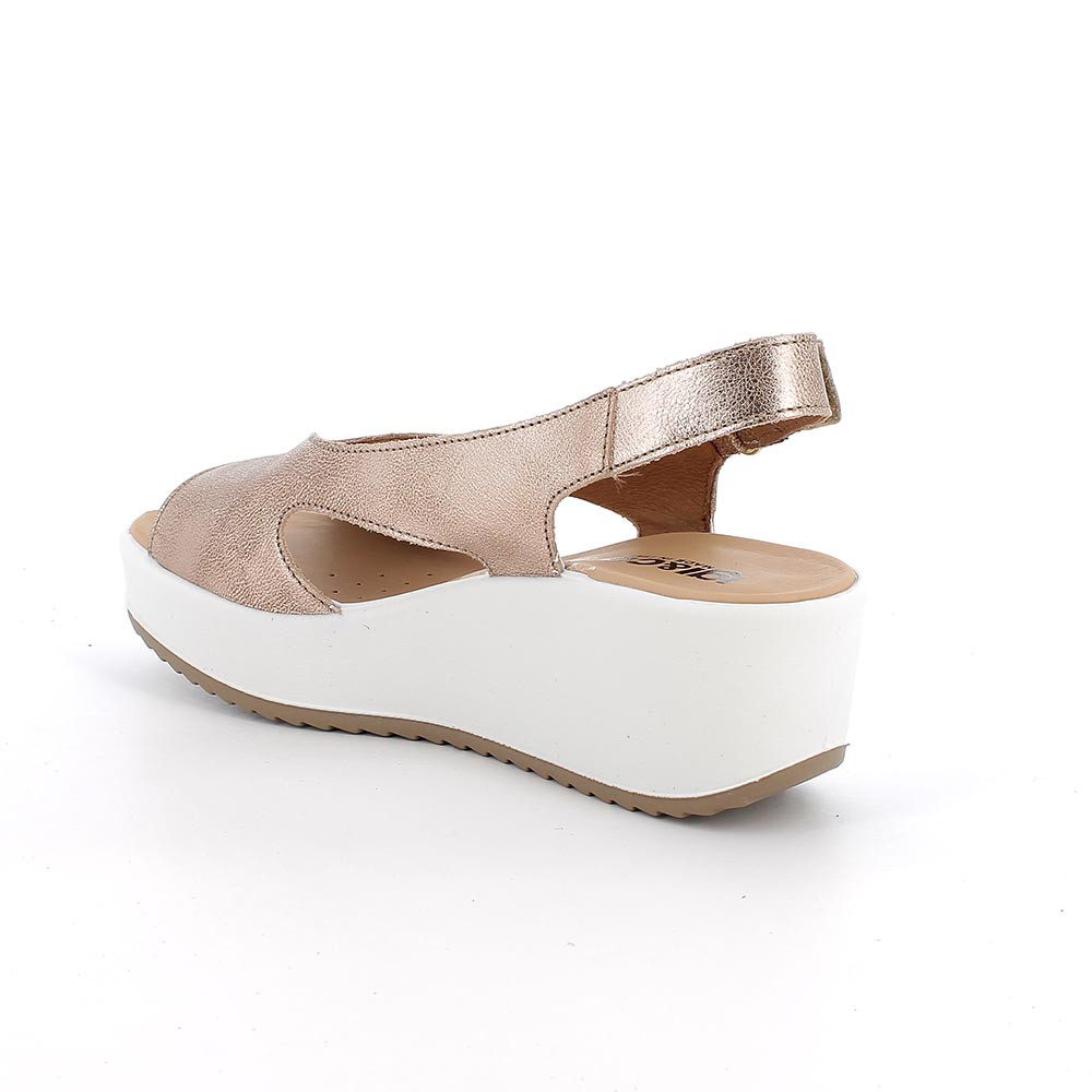 SANDALS WITH WEDGE FOR WOMAN PLATINUM AND BEIGE WITH VELCRO