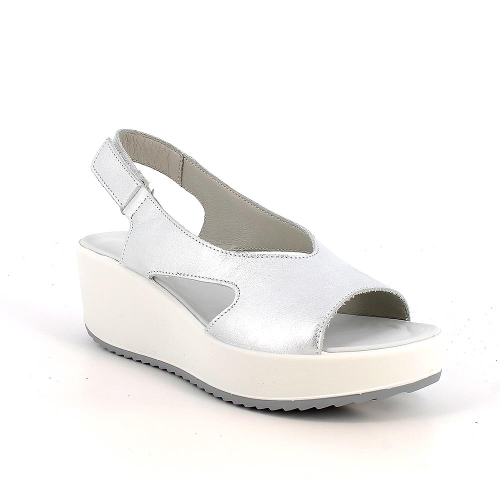 SANDALS WITH WEDGE FOR WOMAN SILVER WITH VELCRO