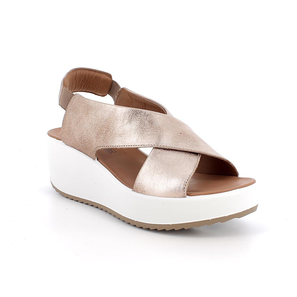 SANDALS WITH WEDGE FOR WOMAN PLATINUM AND BEIGE WITH ELASTIC