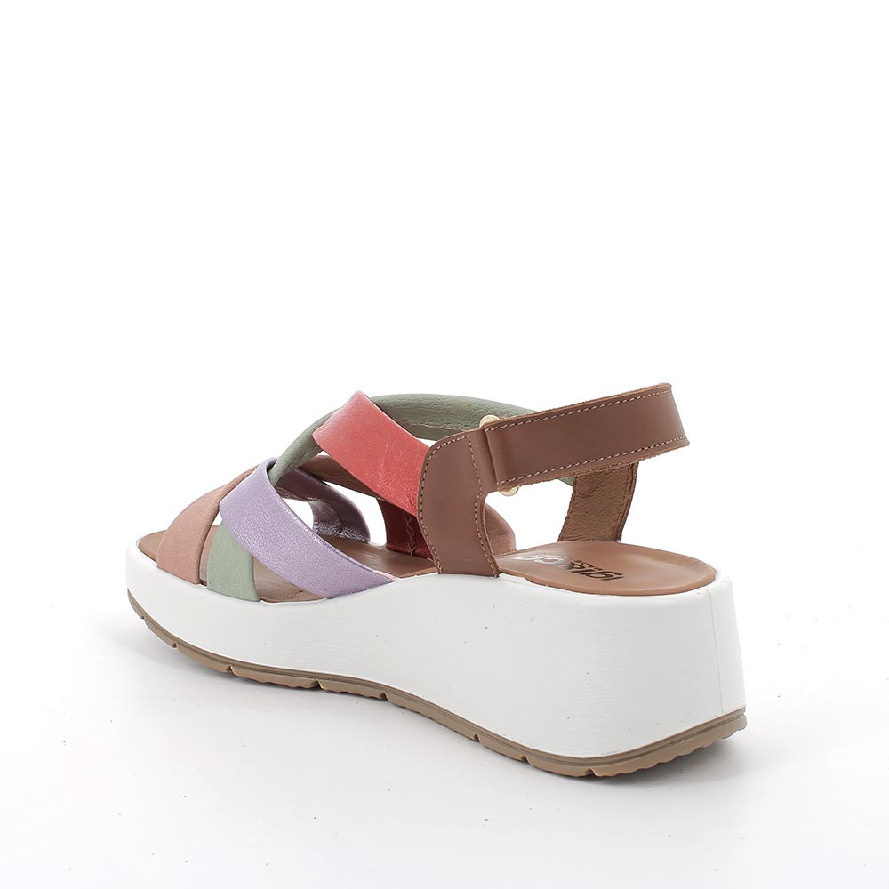 SANDALS WITH WEDGE FOR WOMAN RED AND BEIGE WITH VELCRO