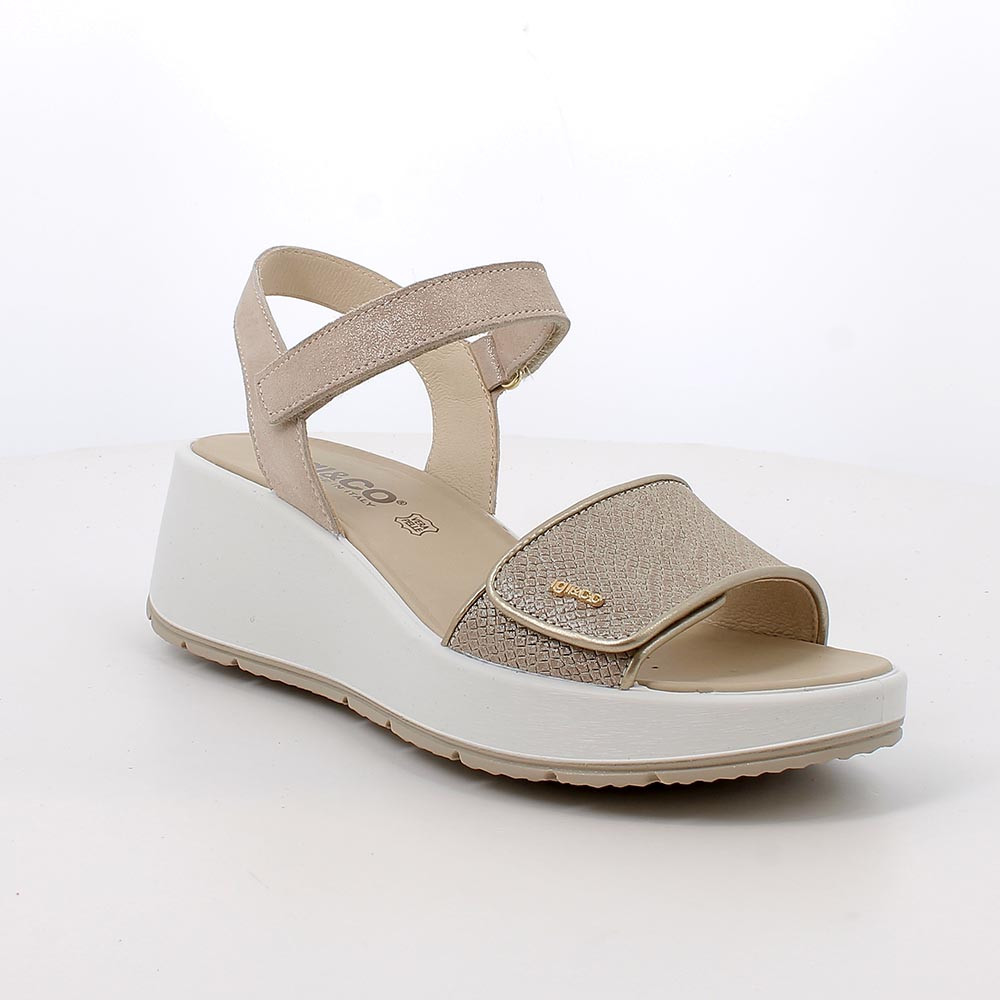SANDALS WITH WEDGE FOR WOMAN PLATINUM WITH VELCRO