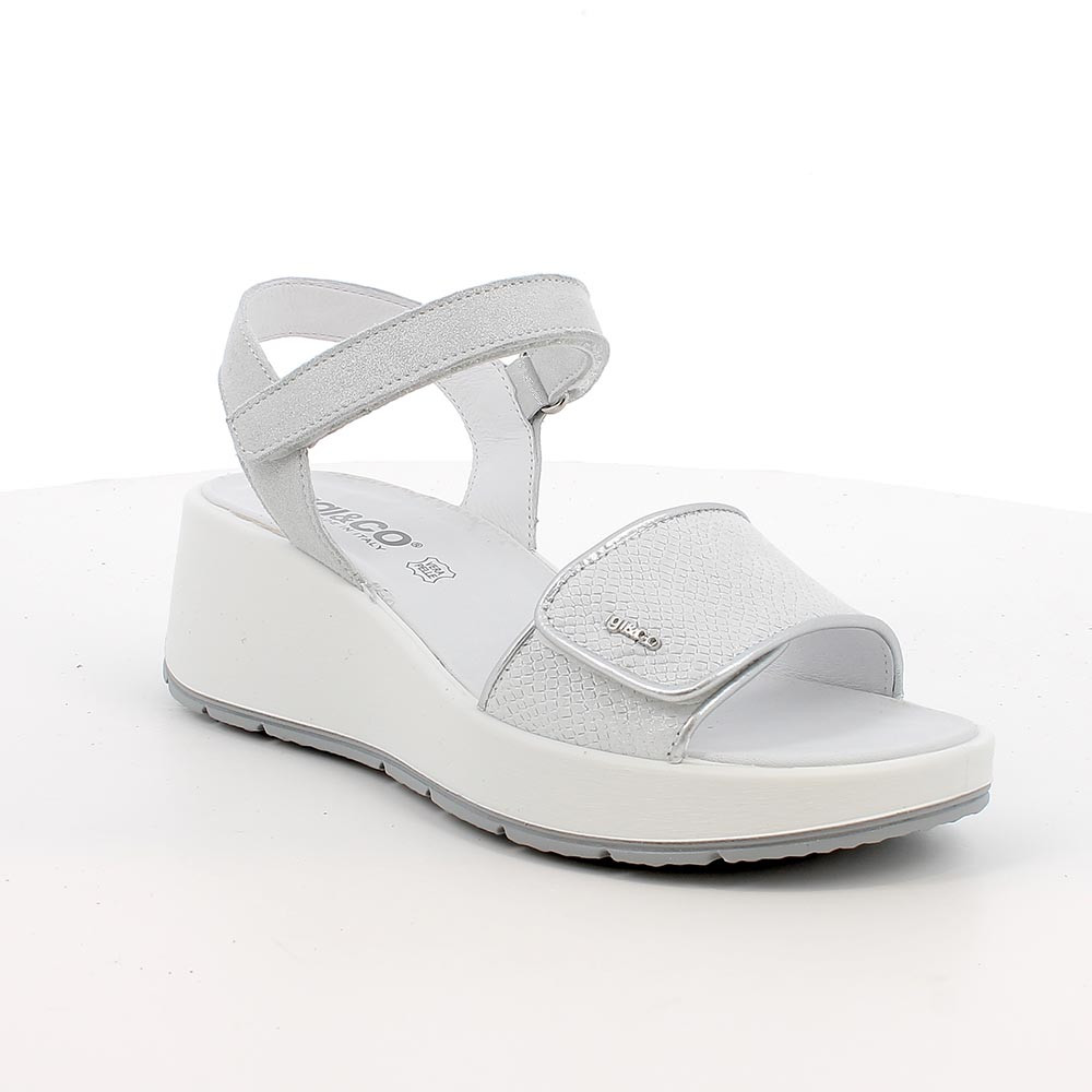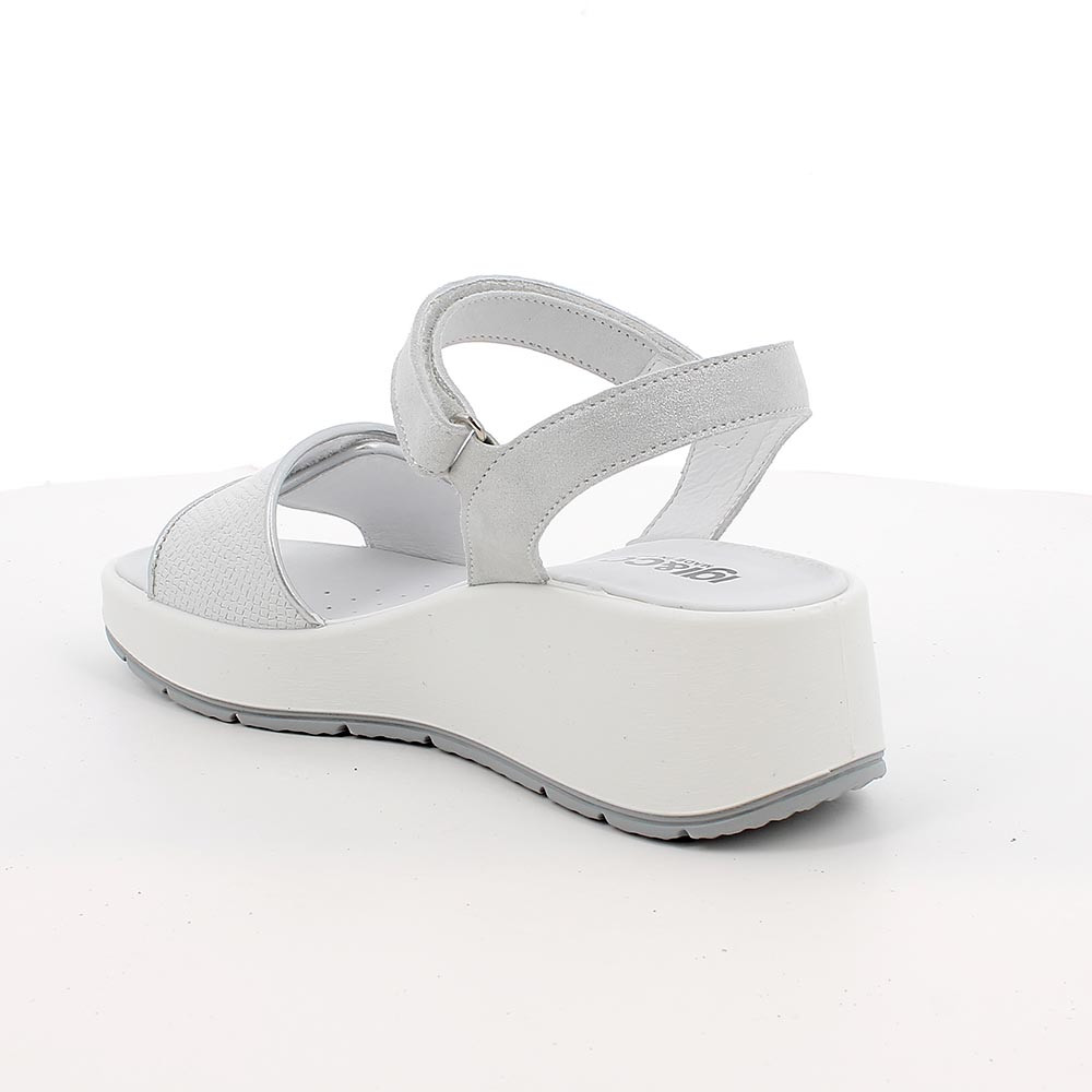 SANDALS WITH WEDGE FOR WOMAN SILVER AND WHITE WITH VELCRO