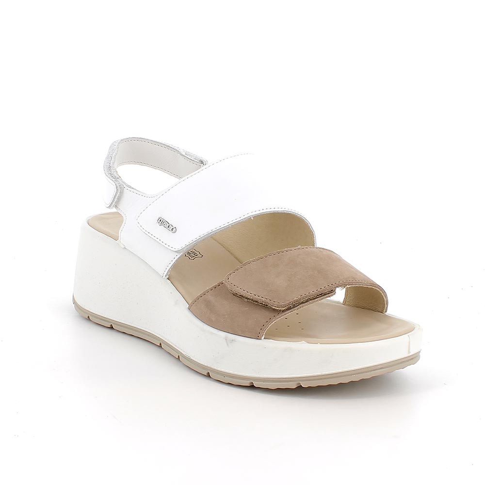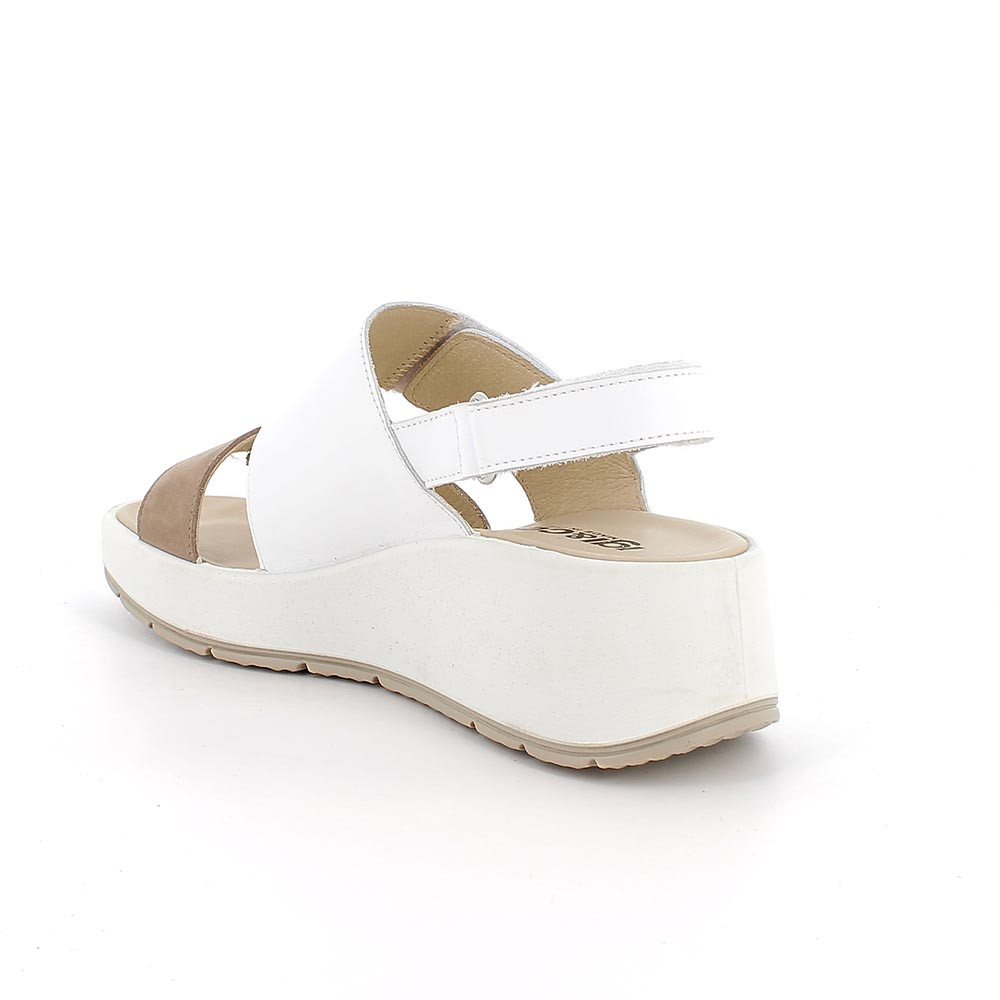 SANDALS WITH WEDGE FOR WOMAN BEIGE AND WHITE WITH VELCRO