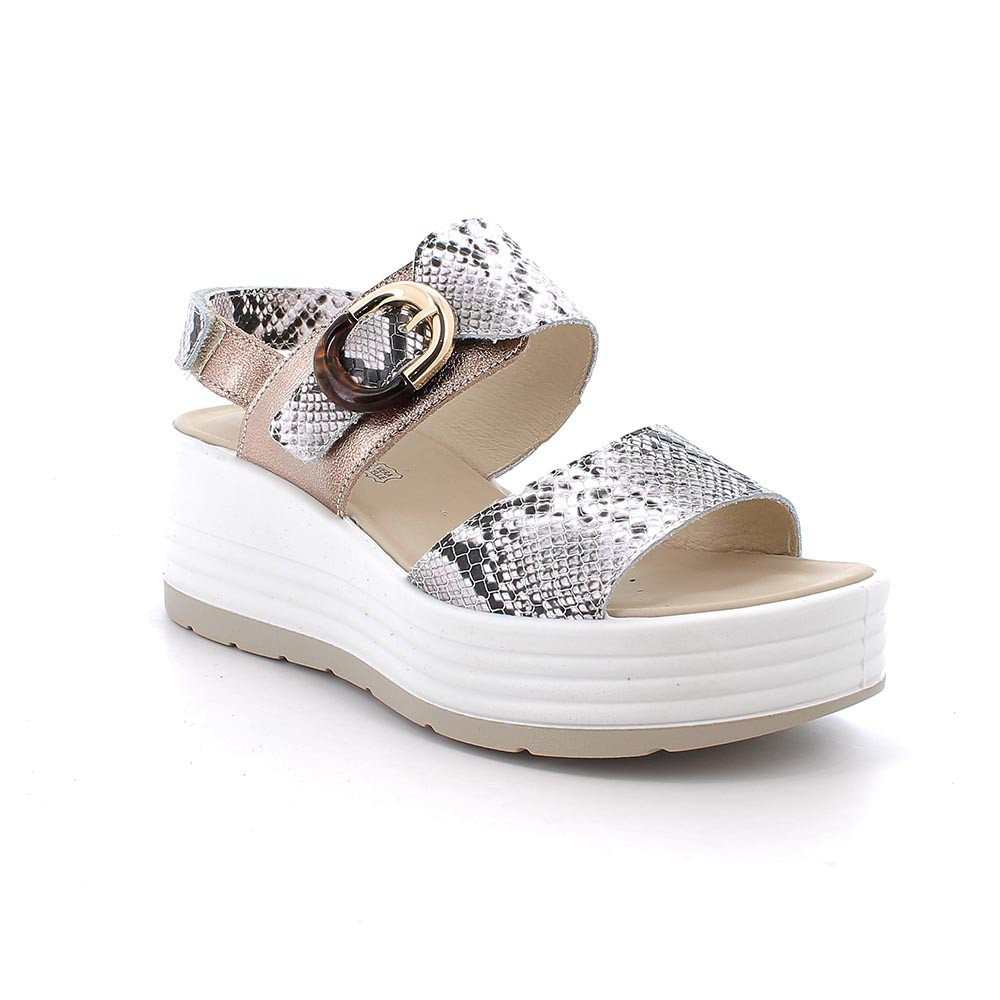 SANDALS WITH WEDGE FOR WOMAN GREY AND PLATINUM WITH VELCRO