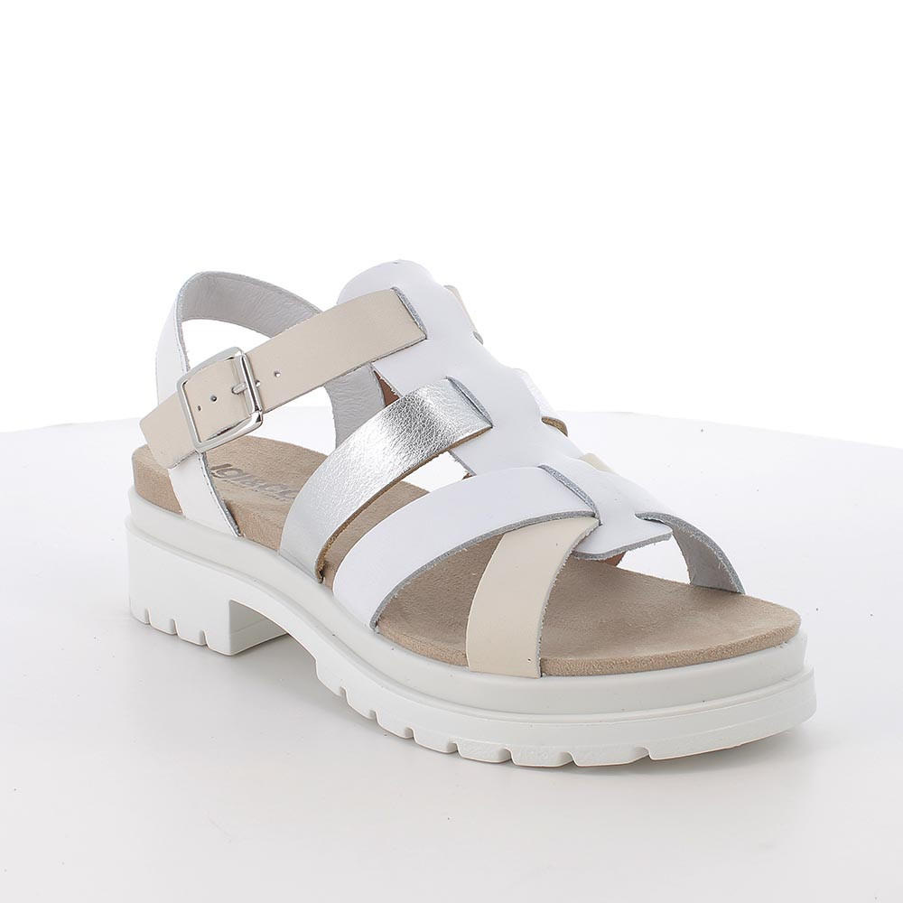 SANDALS WITH HEEL FOR WOMAN WHITE AND SILVER WITH BUCKLE