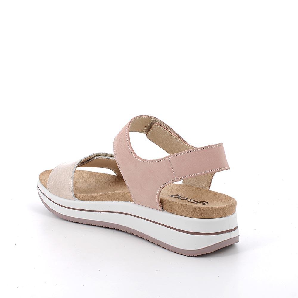 SANDALS WITH WEDGE FOR WOMAN PINK AND PLATINUM WITH VELCRO