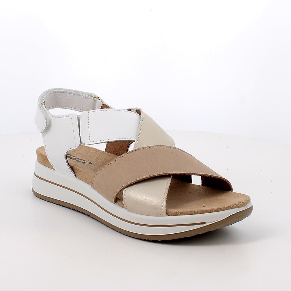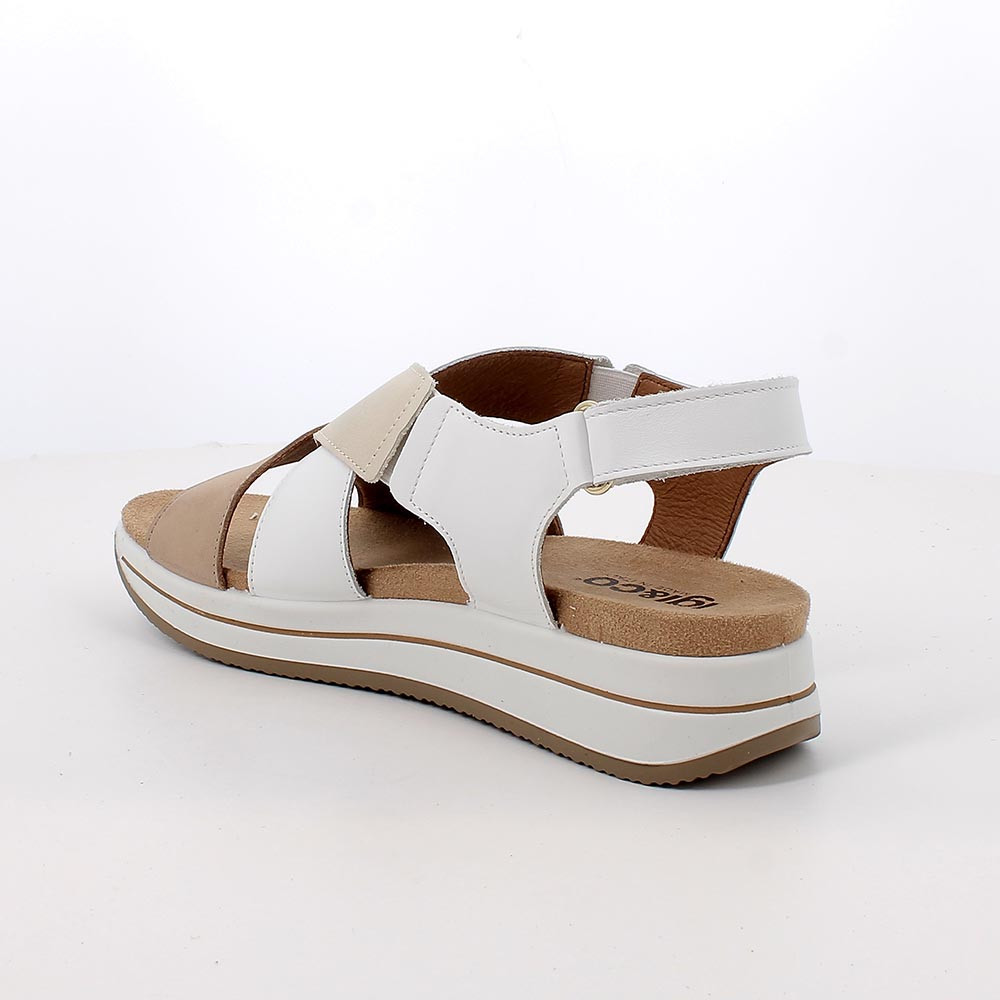 SANDALS WITH WEDGE FOR WOMAN BEIGE AND WHITE WITH VELCRO