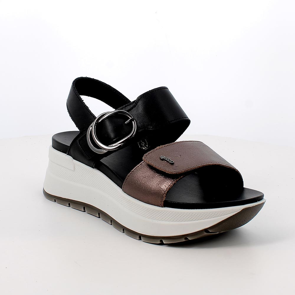 SANDALS WITH WEDGE FOR WOMAN BROWN AND BLACK WITH VELCRO