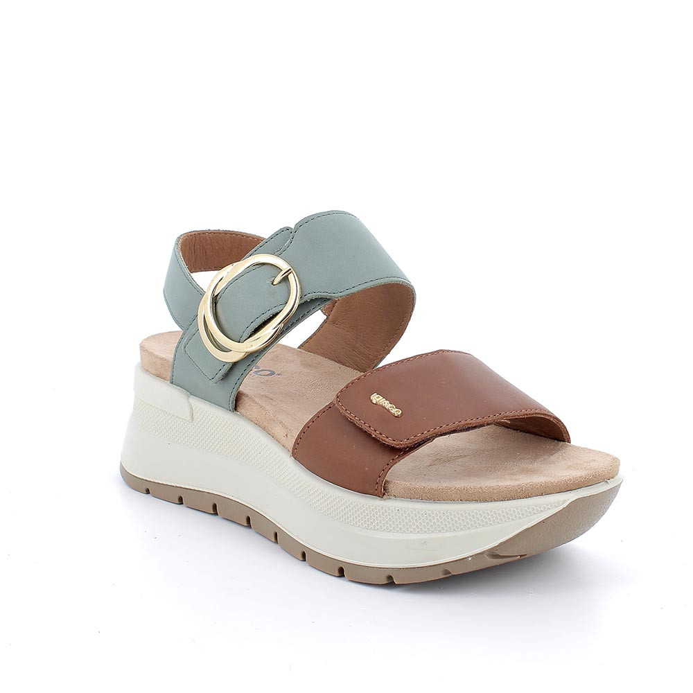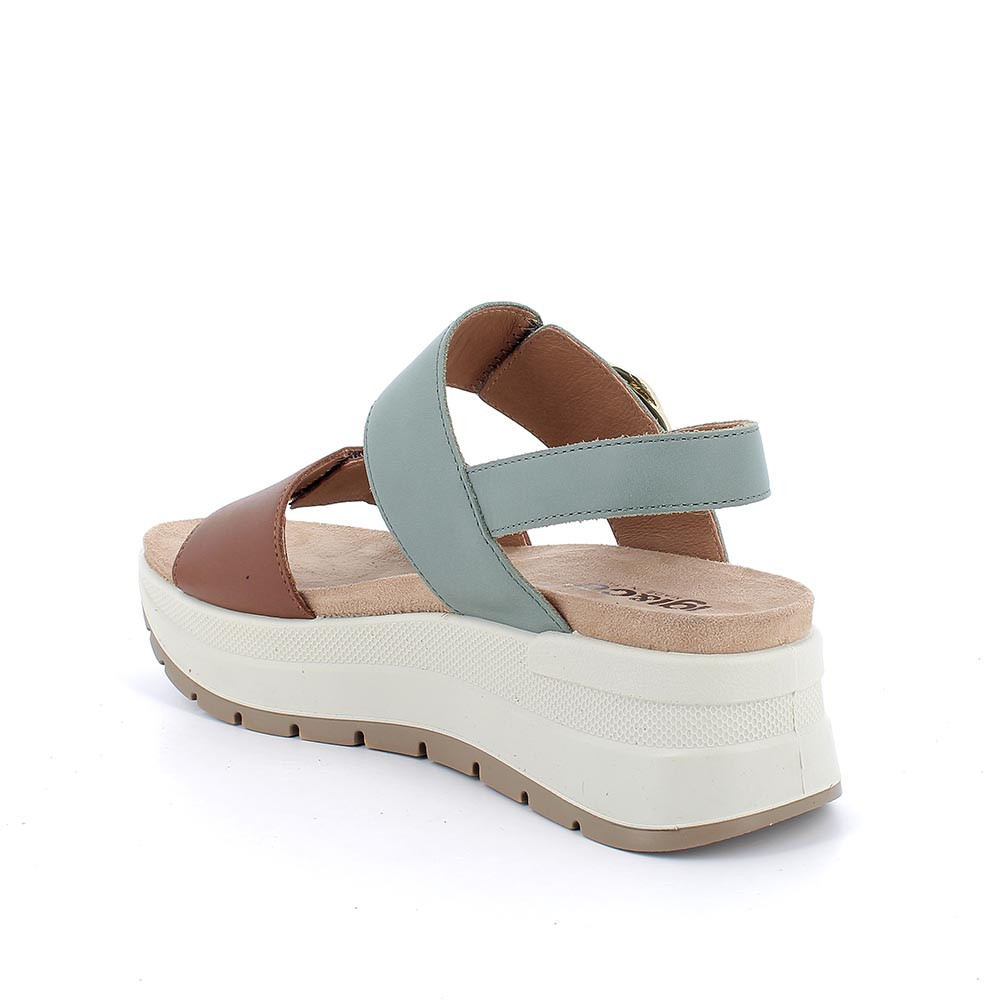 SANDALS WITH WEDGE FOR WOMAN BROWN AND GREEN WITH VELCRO