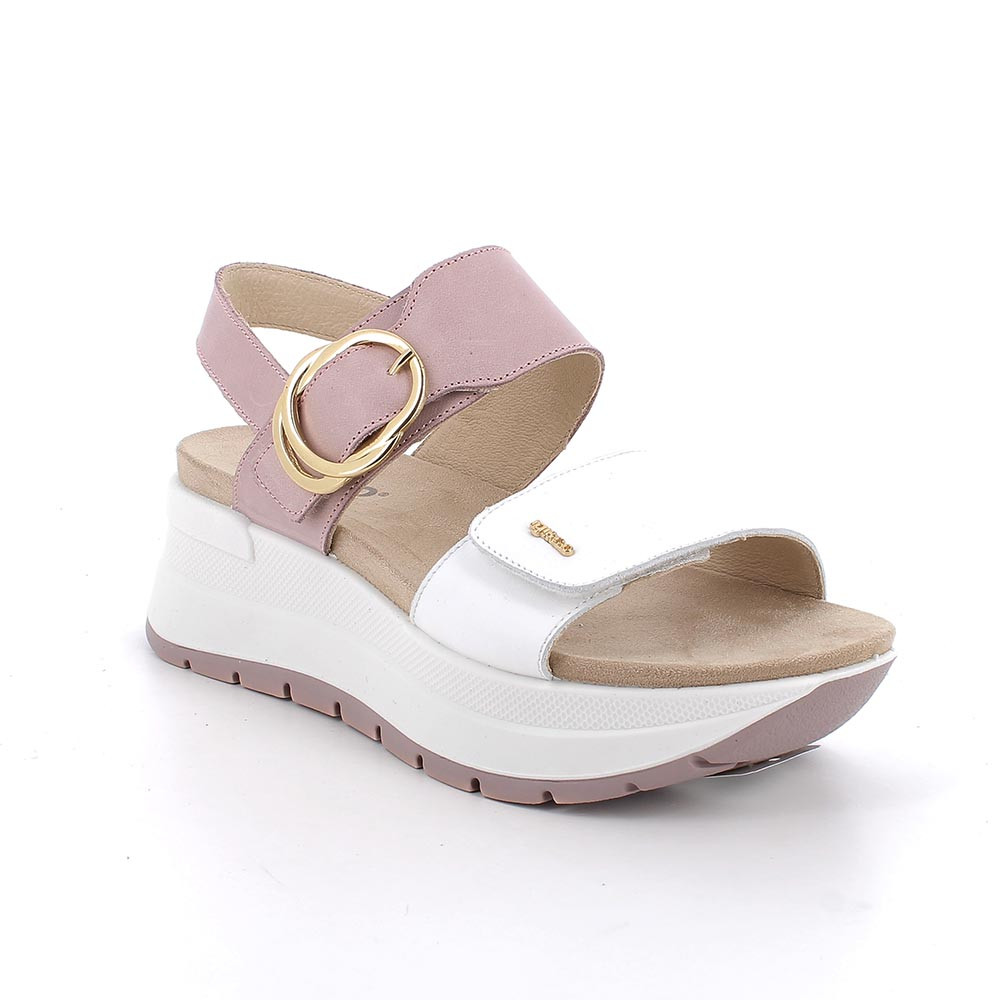 SANDALS WITH WEDGE FOR WOMAN WHITE AND PINK WITH VELCRO