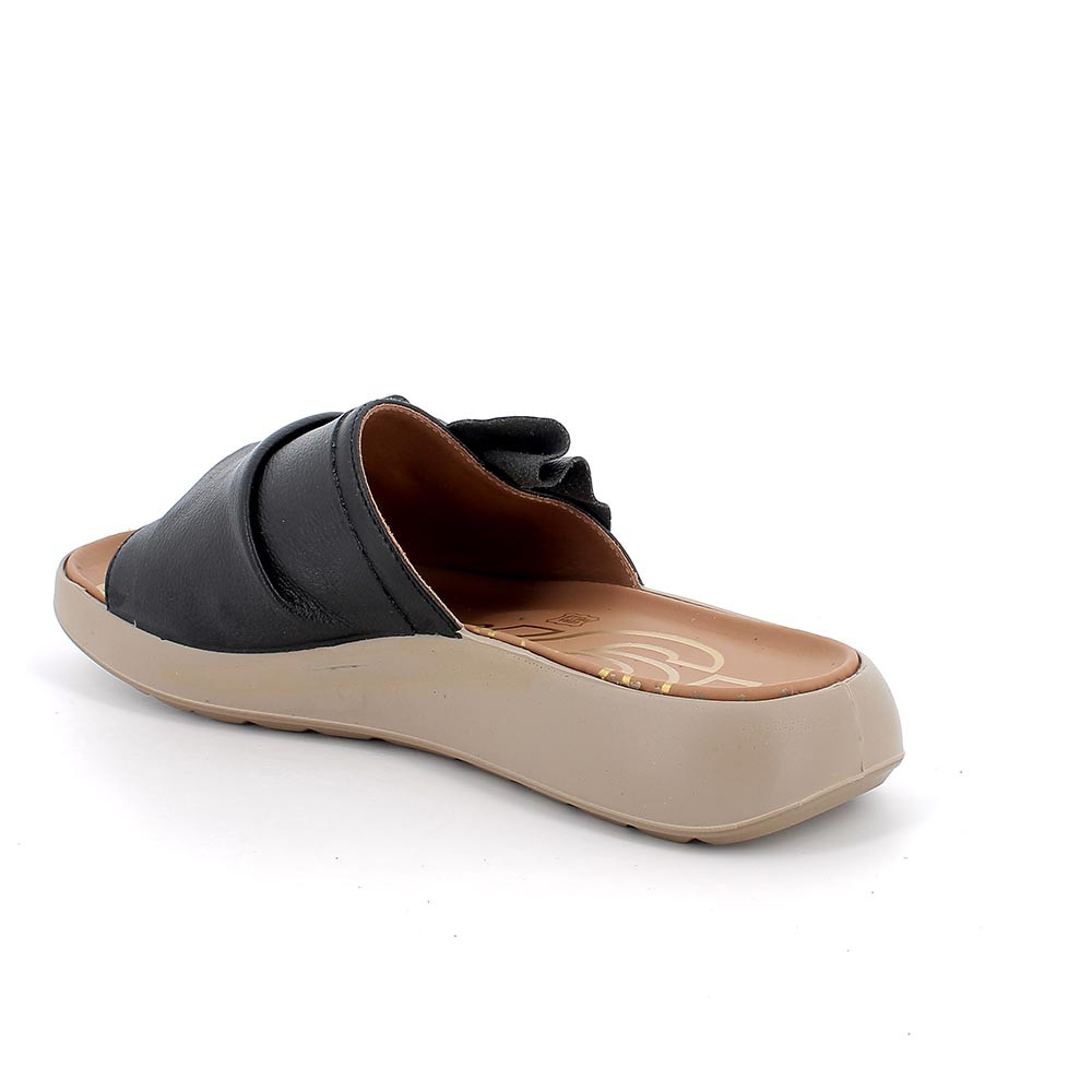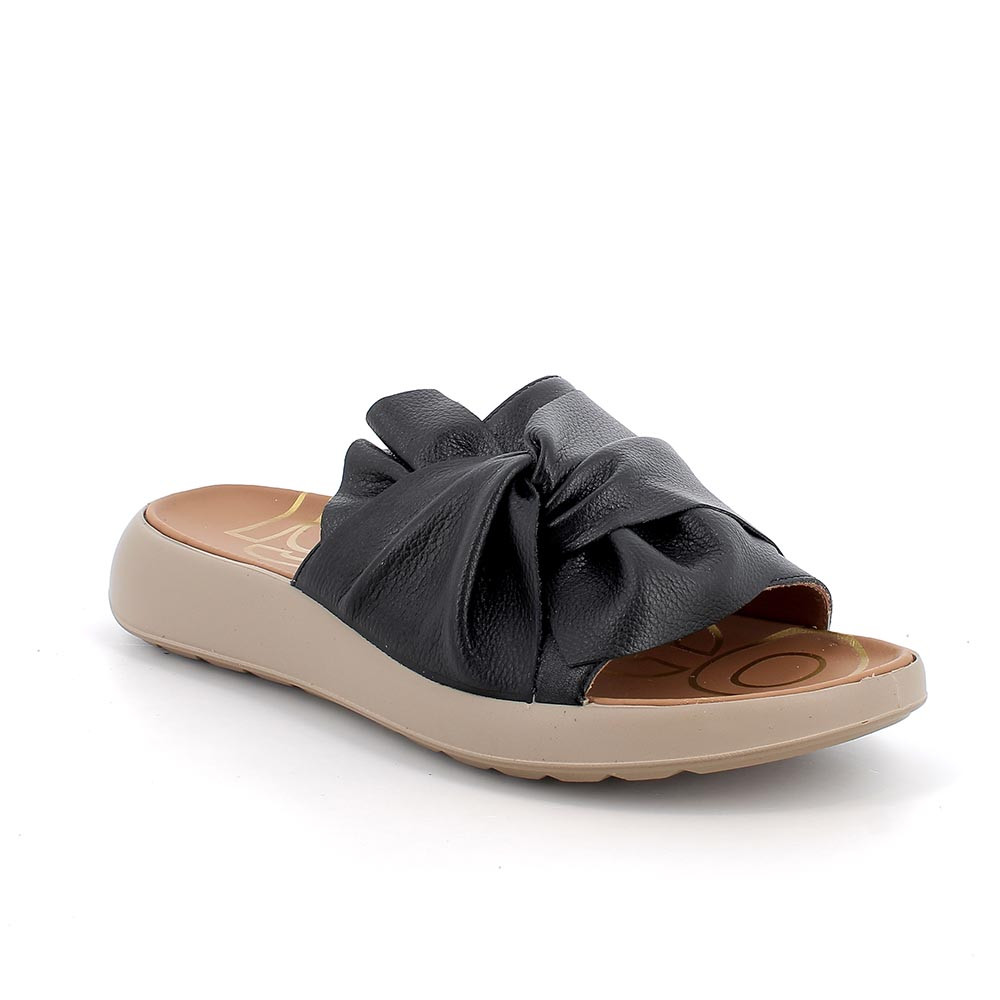 These slide-style sandals with a soft and super chic vibe feature a large knot that immediately creates a wow effect. Made entirely of leather, they are soft, lightweight, and enveloping, and they can transform even the simplest outfit into something special. The comfortable sole supports your steps without tiring you, perfect for strolling all day through the city, on vacation, or to aperitifs. Feminine, cool, irresistible.