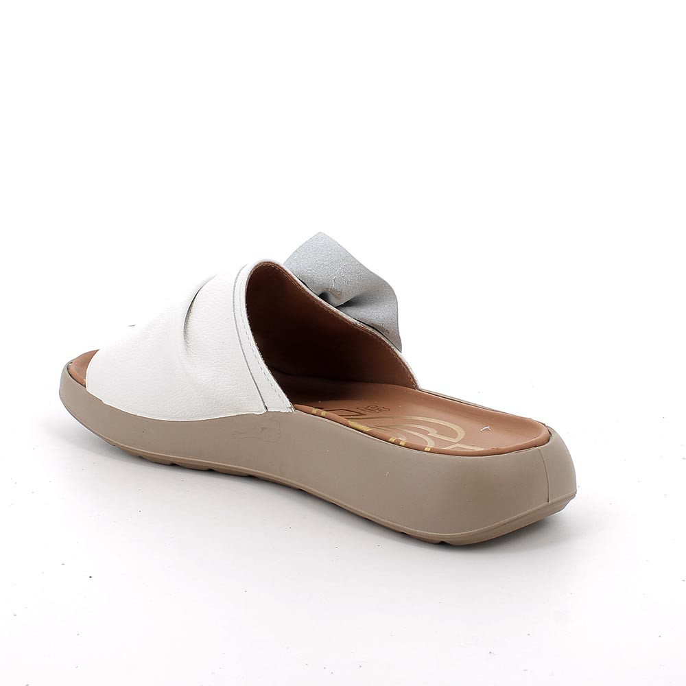 These slide-style sandals with a soft and super chic vibe feature a large knot that immediately creates a wow effect. Made entirely of leather, they are soft, lightweight, and enveloping, and they can transform even the simplest outfit into something special. The comfortable sole supports your steps without tiring you, perfect for strolling all day through the city, on vacation, or to aperitifs. Feminine, cool, irresistible.