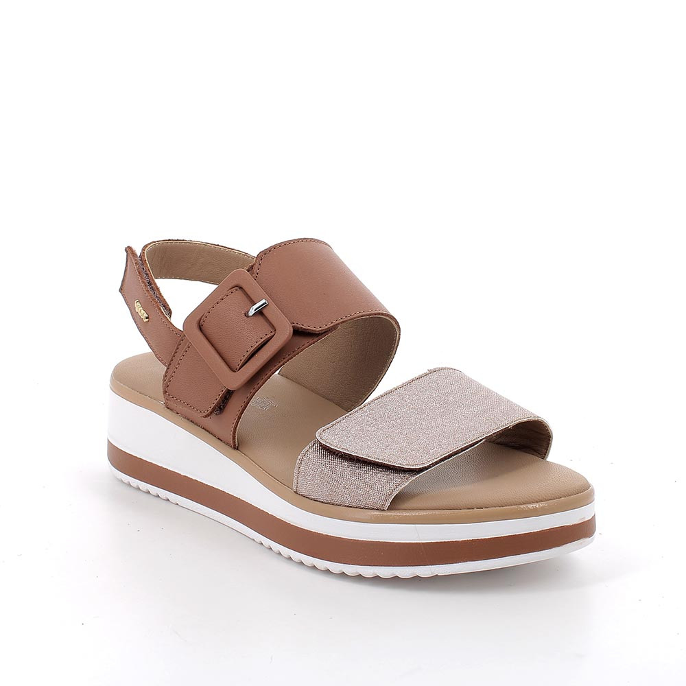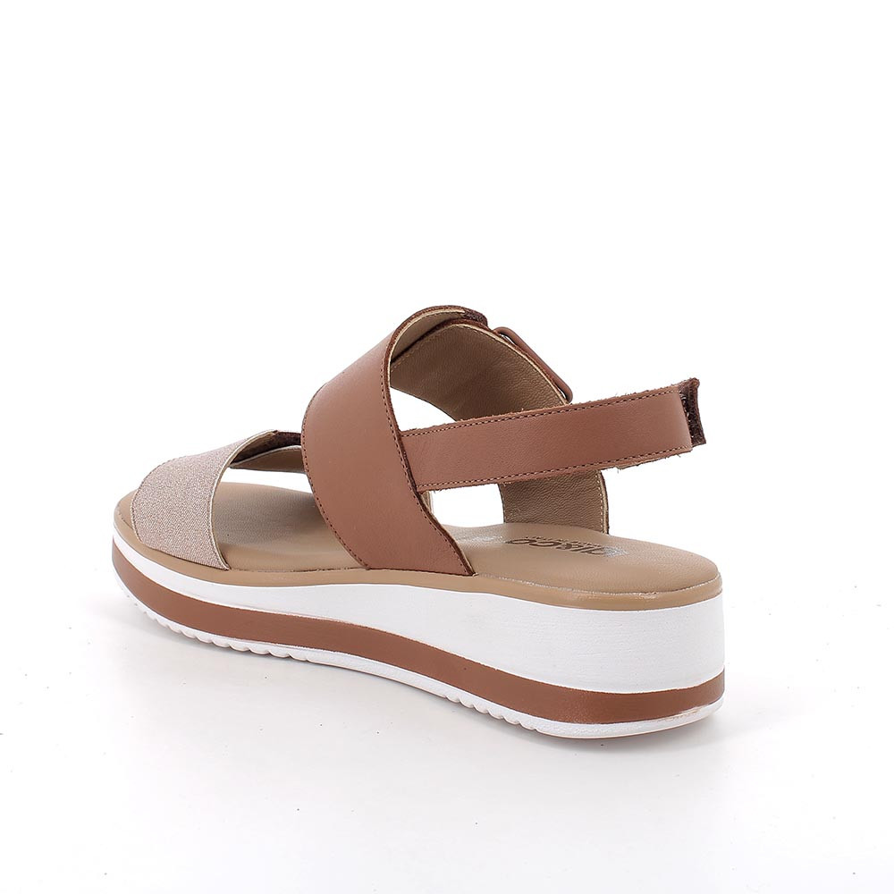 SANDALS WITH WEDGE FOR WOMAN BROWN AND PINK WITH VELCRO