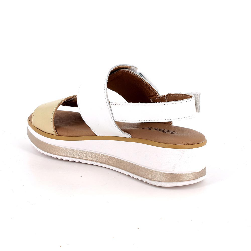 SANDALS WITH WEDGE FOR WOMAN PLATINUM AND WHITE WITH VELCRO