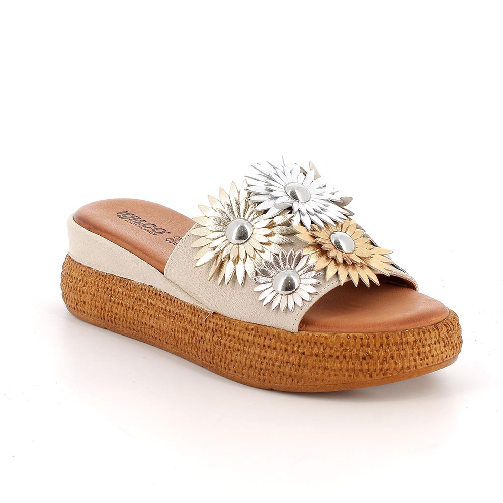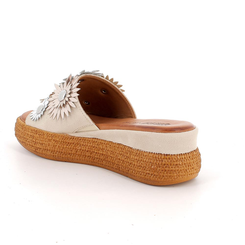 Super summery slide sandals with oversized flowers that catch the eye and immediately create a “wow” effect. The rope-effect wedge is perfect for summer, and the soft strap keeps your foot comfortable and stable. These sandals can turn even the simplest outfit into something special: feminine, bright, perfect for walks, aperitifs, and summer evenings. Wear them and bring a bit of sunshine to your feet.