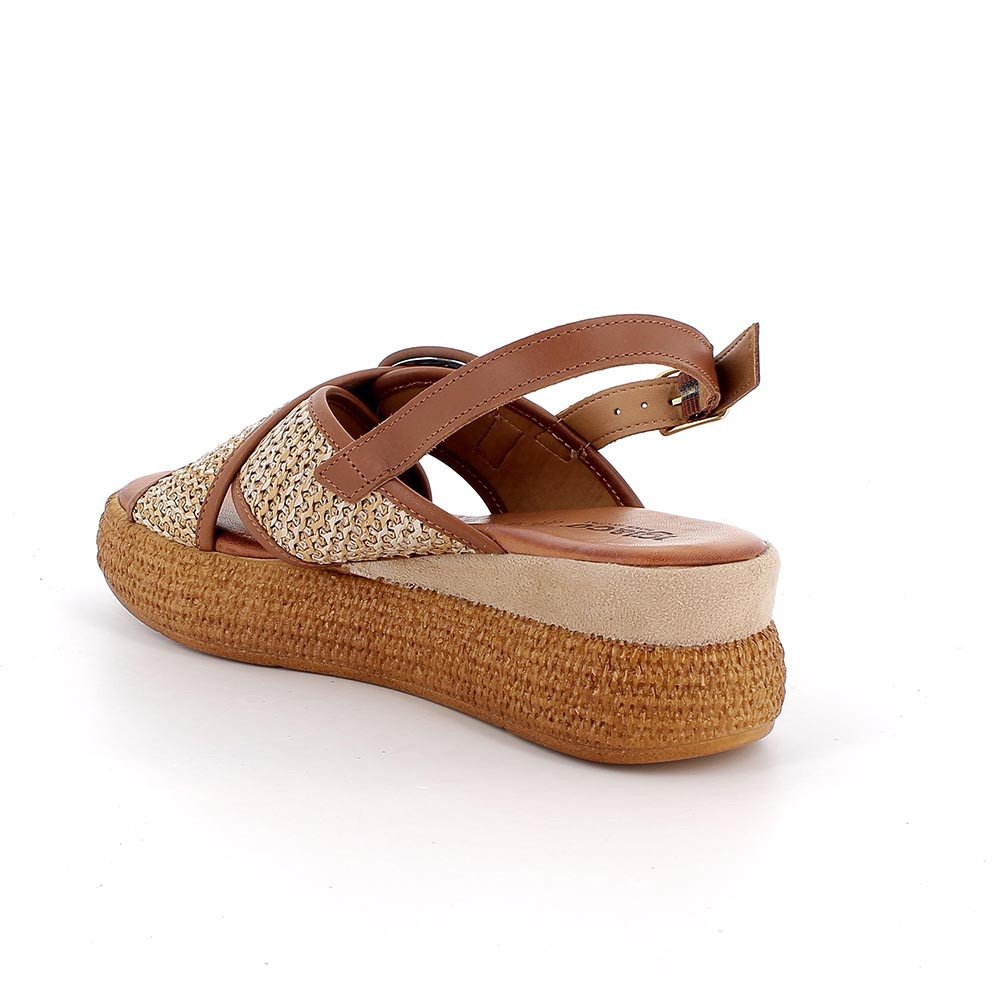 SANDALS WITH WEDGE FOR WOMAN BROWN AND BEIGE WITH BUCKLE