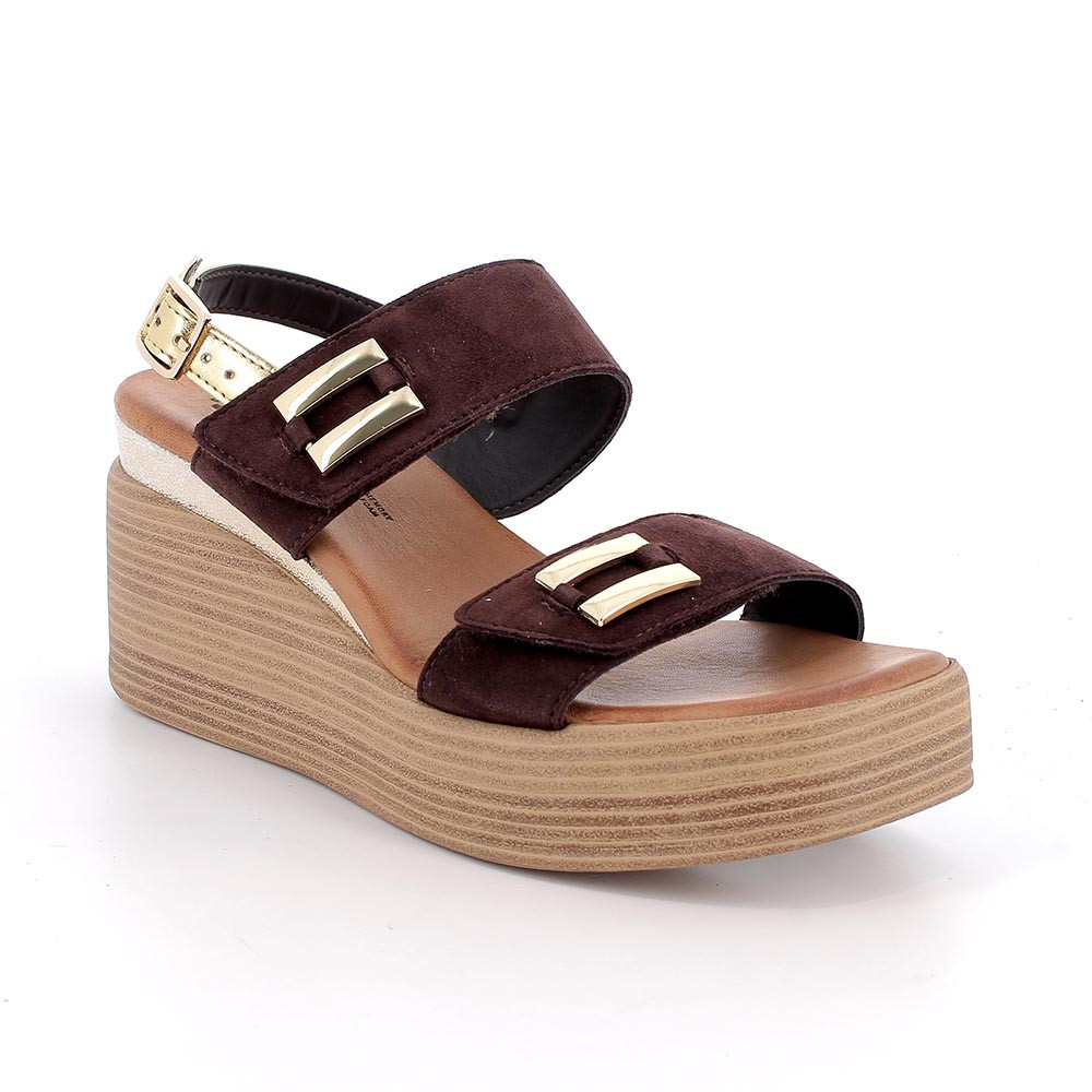 SANDALS WITH WEDGE FOR WOMAN BROWN AND PLATINUM WITH VELCRO