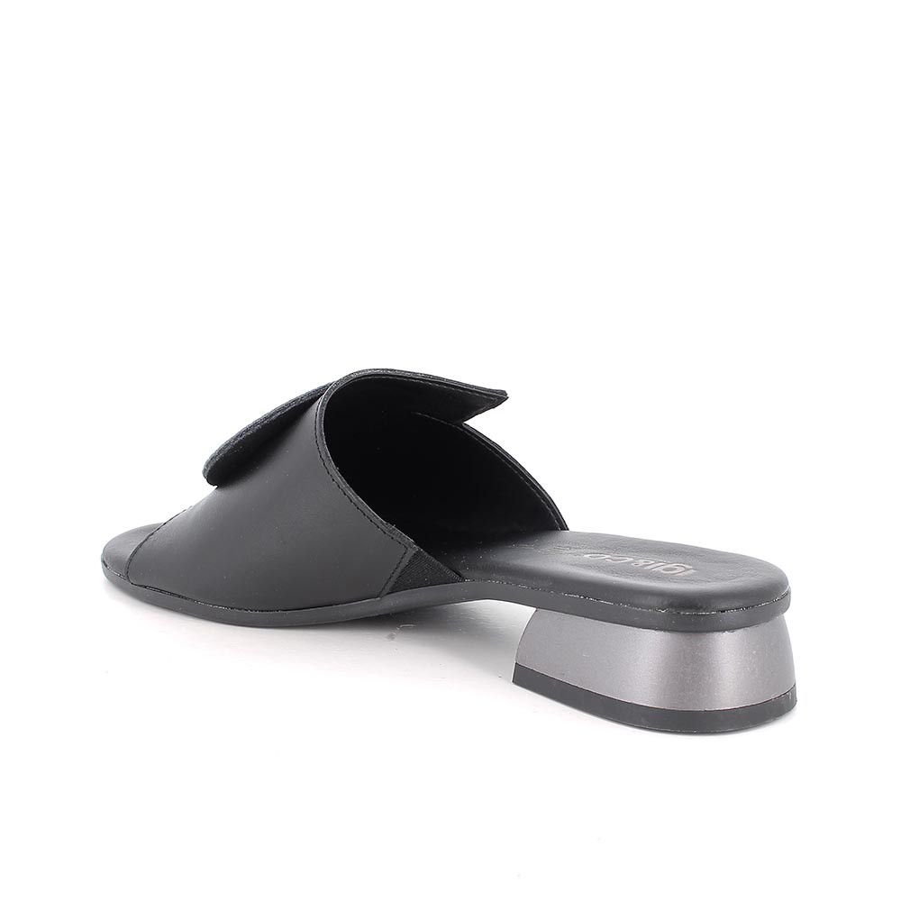 Heeled slipper sandals with hyper-feminine and designer lines. You can easily combine them with both elegant and more casual outfits. The strong personality of these sandals is enhanced by the leathers used and the statement accessory. The foot rests on a comfortable heel which gives impetus and support to the leg. The insole is covered in leather to facilitate breathability.