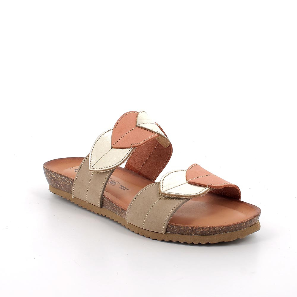Sandals with a bold, super practical look, featuring a double adjustable strap that wraps around the foot and instantly gives you a feeling of stability. The cork sole provides that natural, relaxed sensation, perfect for walking at a leisurely pace. Clean lines, urban spirit, comfort you feel from the very first step. Slip them on quickly and they follow you everywhere: running errands, strolls, long days on the move.