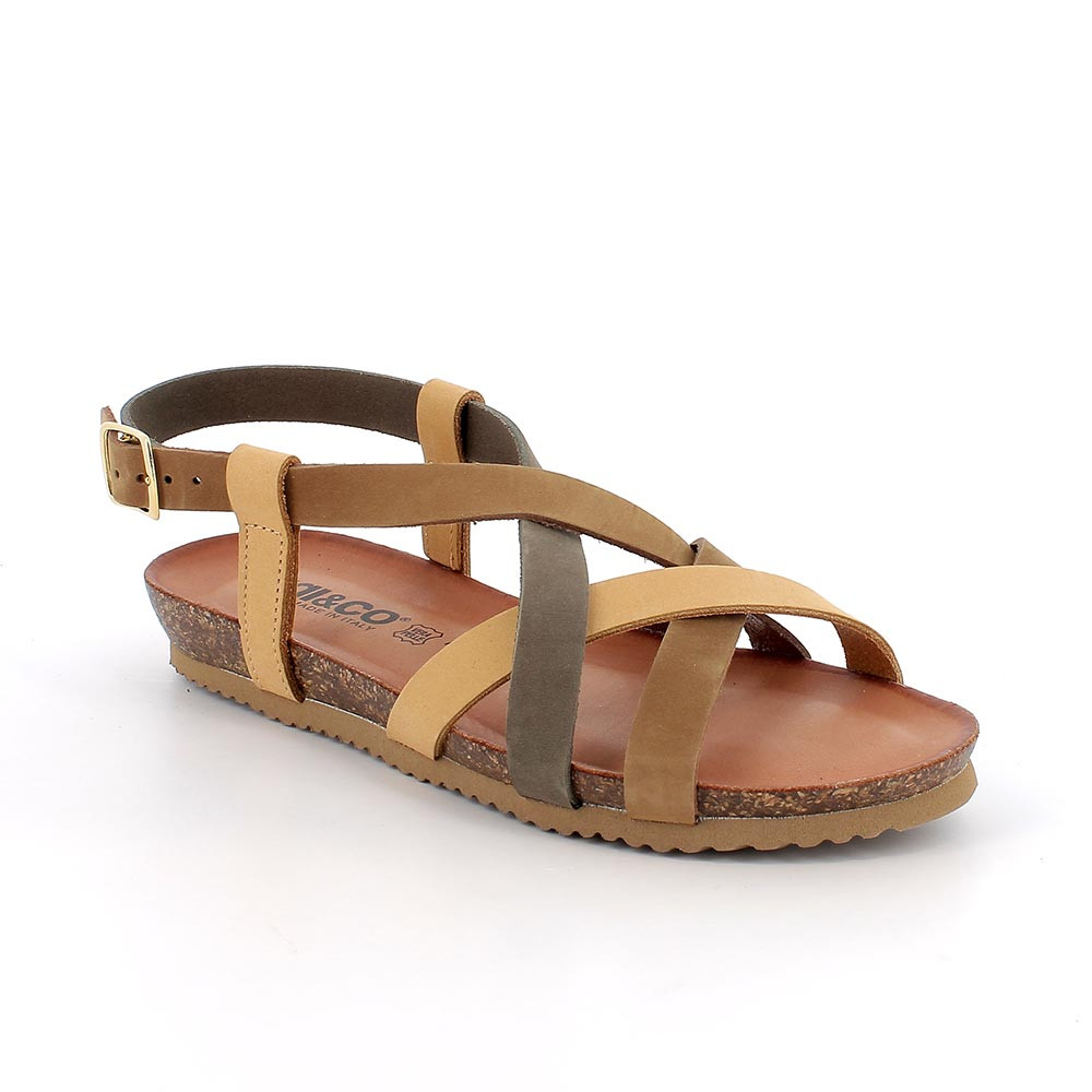 SANDALS FOR WOMAN BROWN AND YELLOW WITH BUCKLE