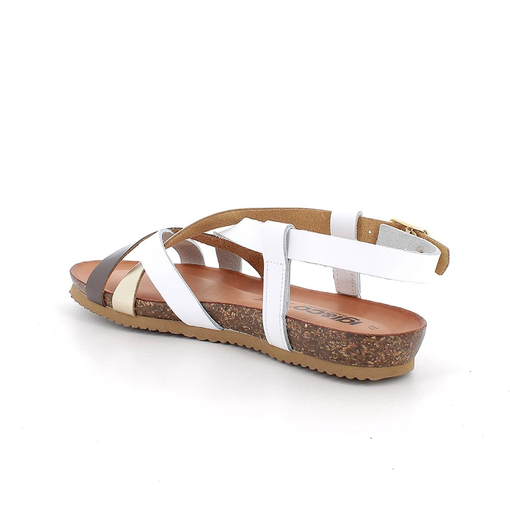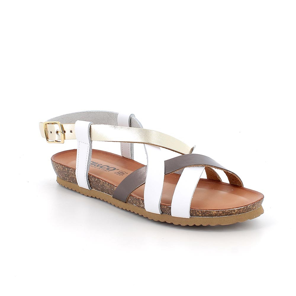 SANDALS FOR WOMAN WHITE AND PLATINUM WITH BUCKLE