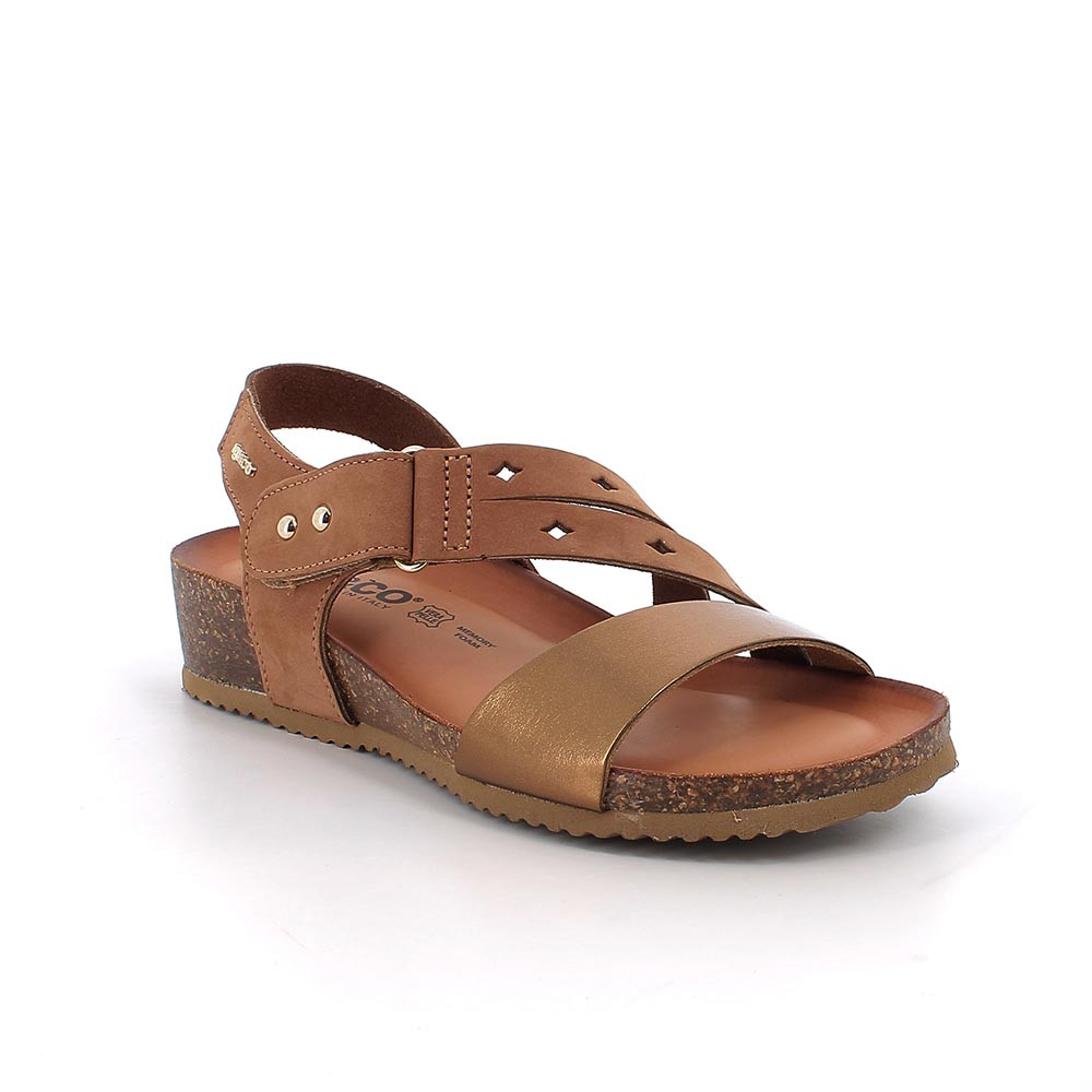 Sandal with an original and feminine weave, adjustable thanks to the practical velcro closure at the ankle. Passepartout for summer outfits to live in comfort and freedom. The sole, slightly wedge-shaped and with the typical lightness of IGI&CO footwear, is equipped with an anatomical leather-covered footbed to guarantee breathability throughout the day.