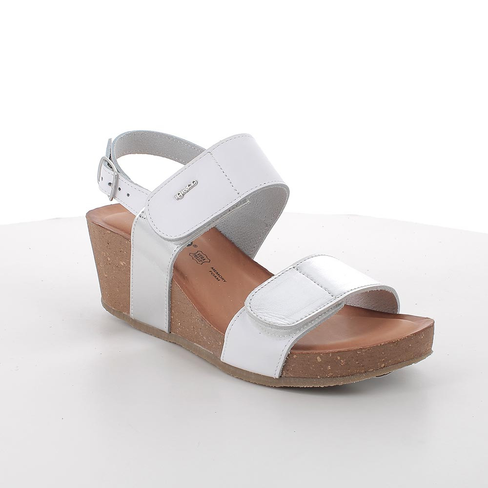 SANDALS WITH WEDGE FOR WOMAN WHITE AND SILVER WITH VELCRO