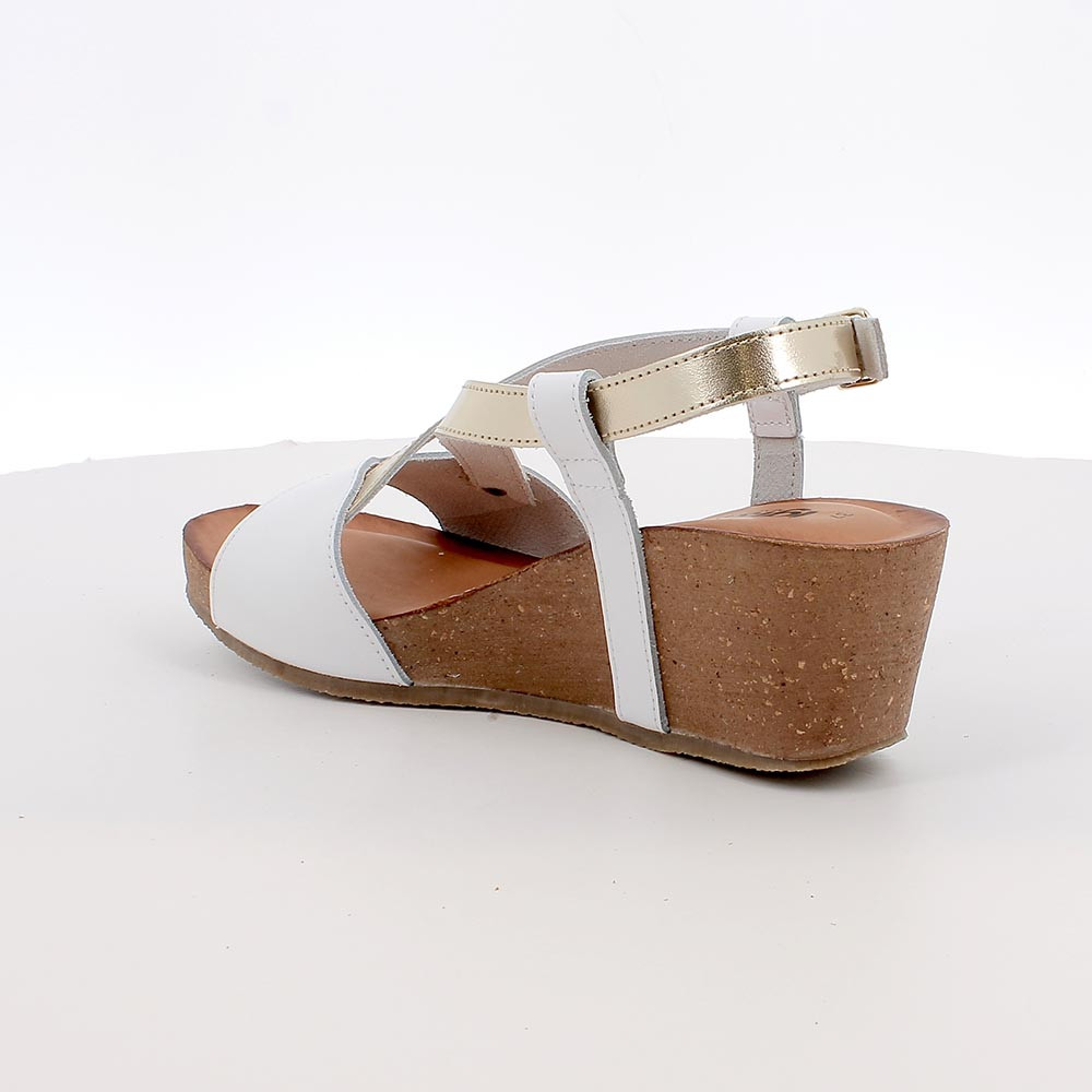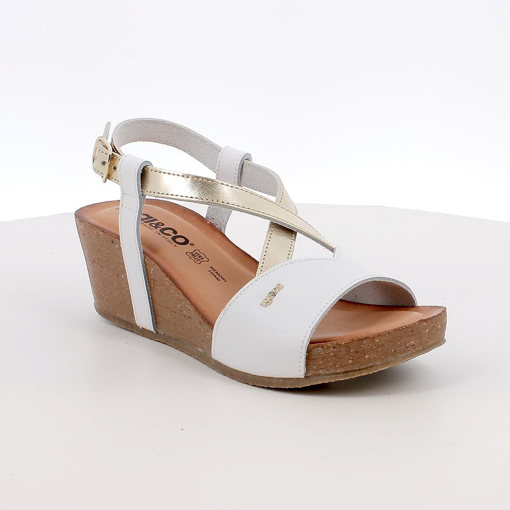 SANDALS WITH WEDGE FOR WOMAN WHITE AND PLATINUM WITH BUCKLE