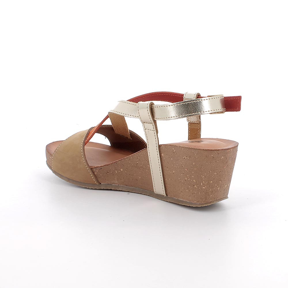 SANDALS WITH WEDGE FOR WOMAN BROWN AND PLATINUM WITH BUCKLE