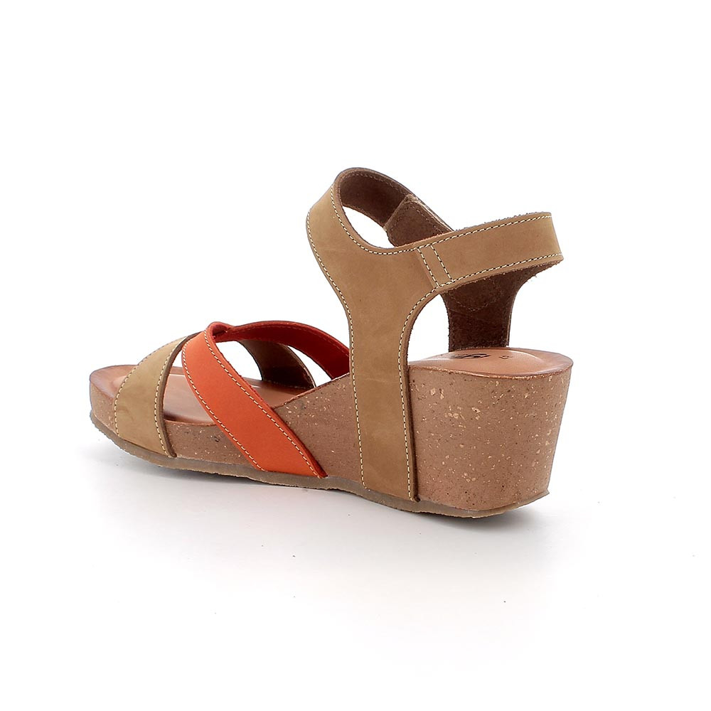 SANDALS WITH WEDGE FOR WOMAN BROWN AND ORANGE WITH VELCRO