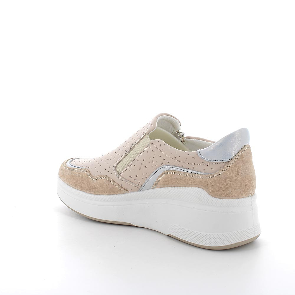 These sports shoes represent a hybrid between sneakers and slip ons. Without strings, they are equipped with an internal elastic gusset and an external zip that make it very easy to put them on and take them off. The line of these shoes is essential and goes very well with the particularity of the soft leather used. The sole has high qualities of lightness and flexibility. The anatomical insole is removable and covered in leather to ensure breathability and hygiene.