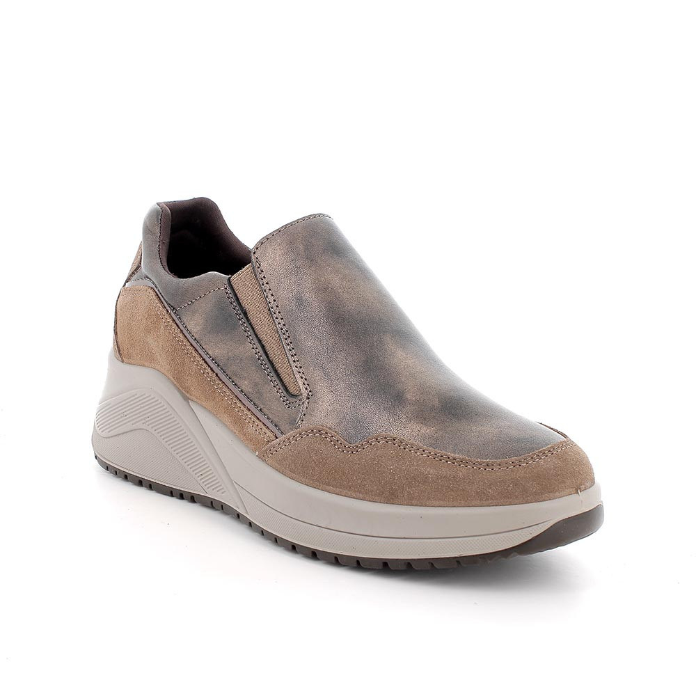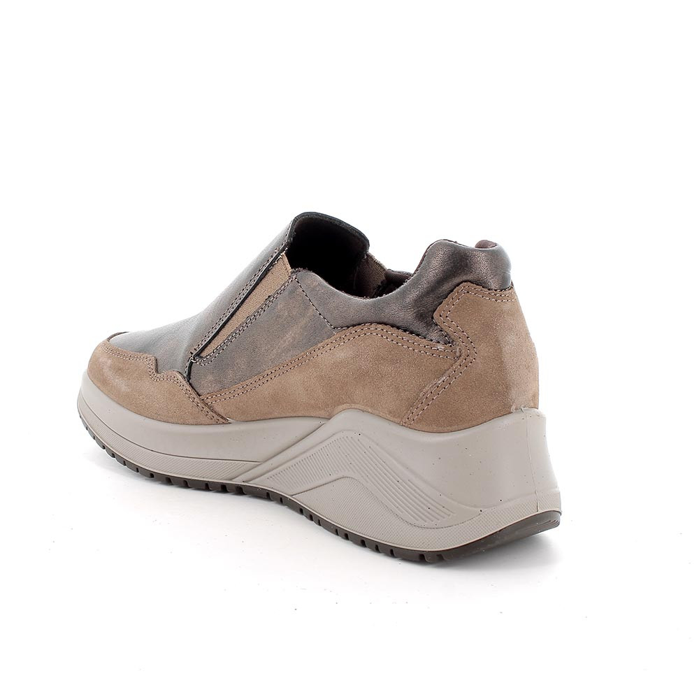 Slip on shoe with wedge for women brown and beige with elastic