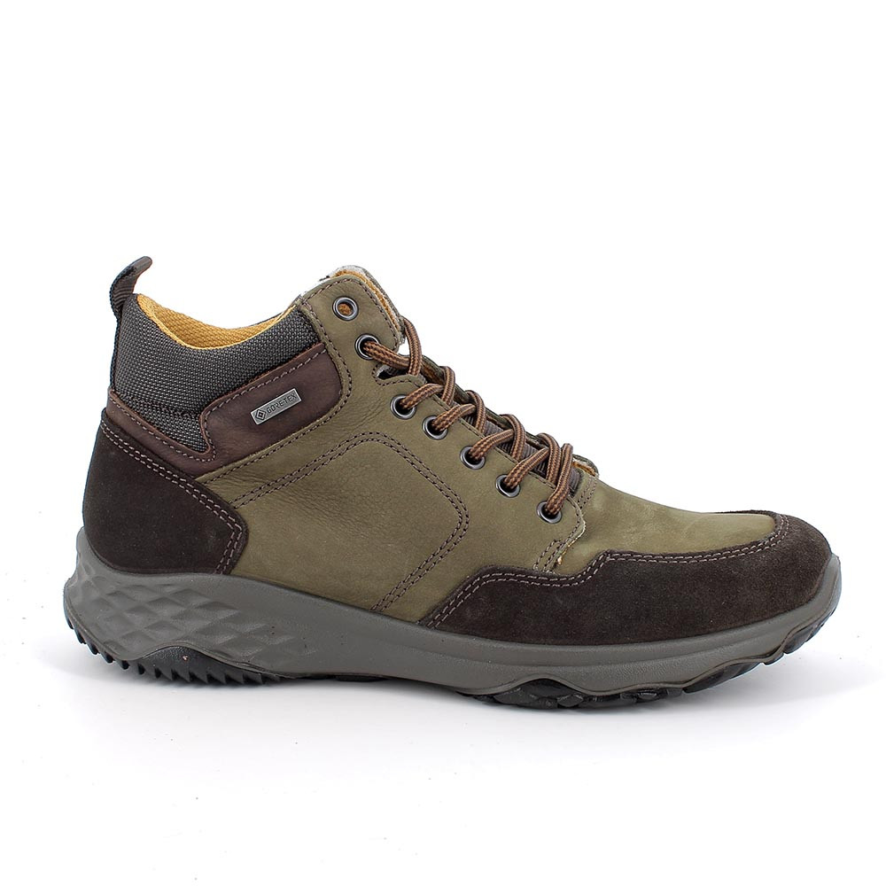 Zapatos deportivos de corte mid que protegen el maléolo gracias a un acolchado suave. Se combinan fácilmente con un estilo casual y permiten vivir los días más dinámicos con gran comodidad. Estos zapatos de caballero con forro Gore-Tex garantizan impermeabilidad y transpirabilidad en cualquier condición climática. La suela es ligera y flexible y regala un bienestar inigualable. La plantilla anatómica es extraíble y está recubierta de piel para asegurar trasnpirabilidad e higiene.